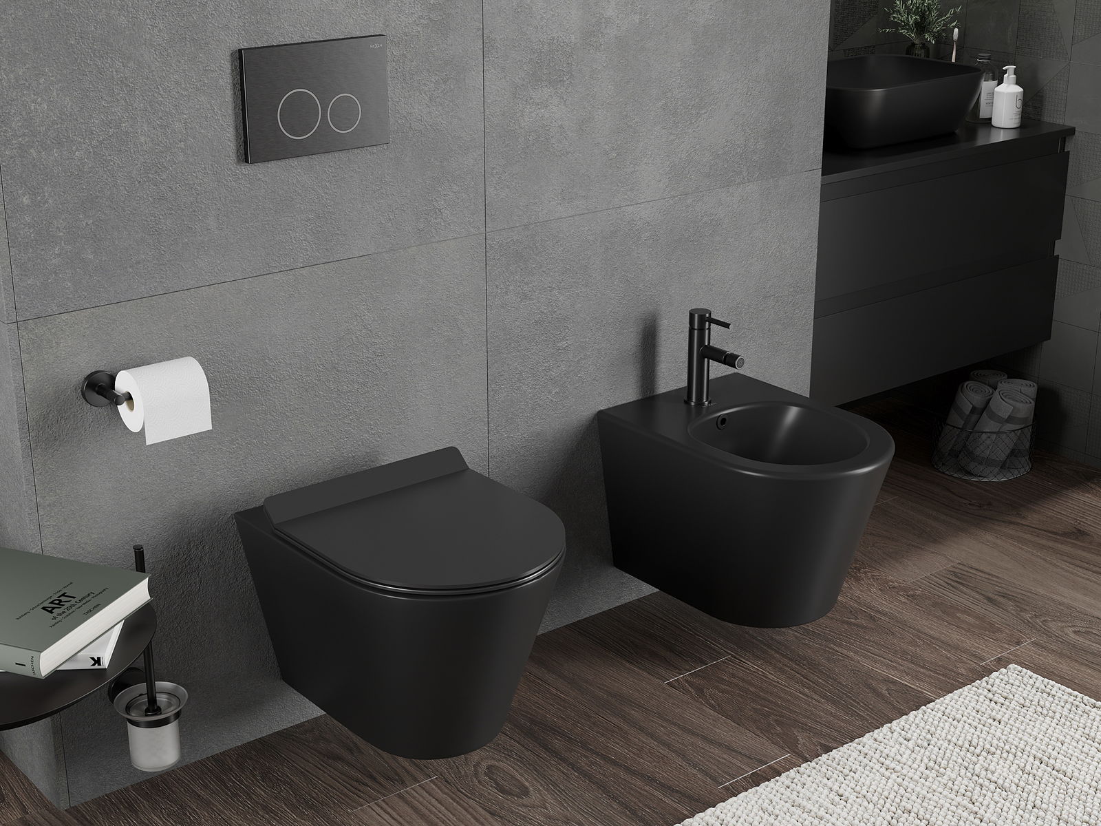 • Mexen Rico miska wc Rimless Tornado z deską wolnoopadającą slim, duroplast, czarna mat - 30720185T