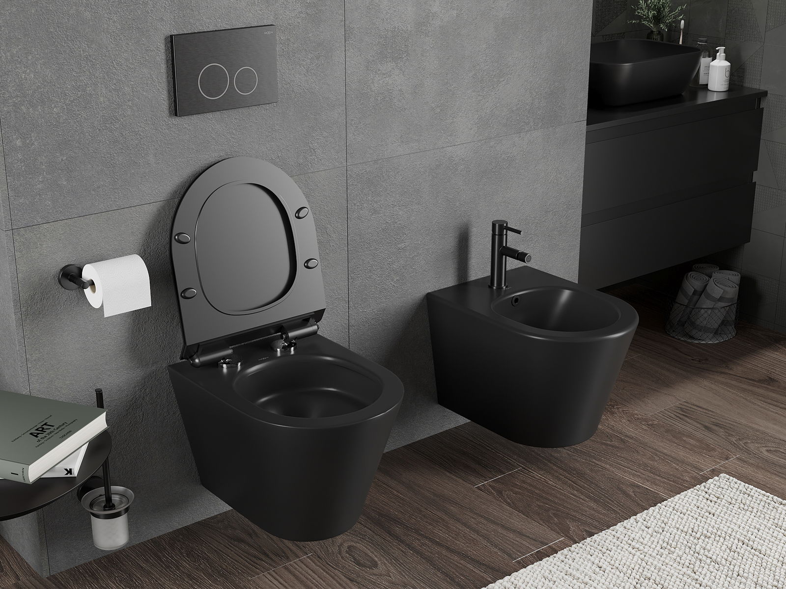 Mexen Rico miska wc Rimless Tornado z deską wolnoopadającą slim, duroplast, czarna mat - 30720185T