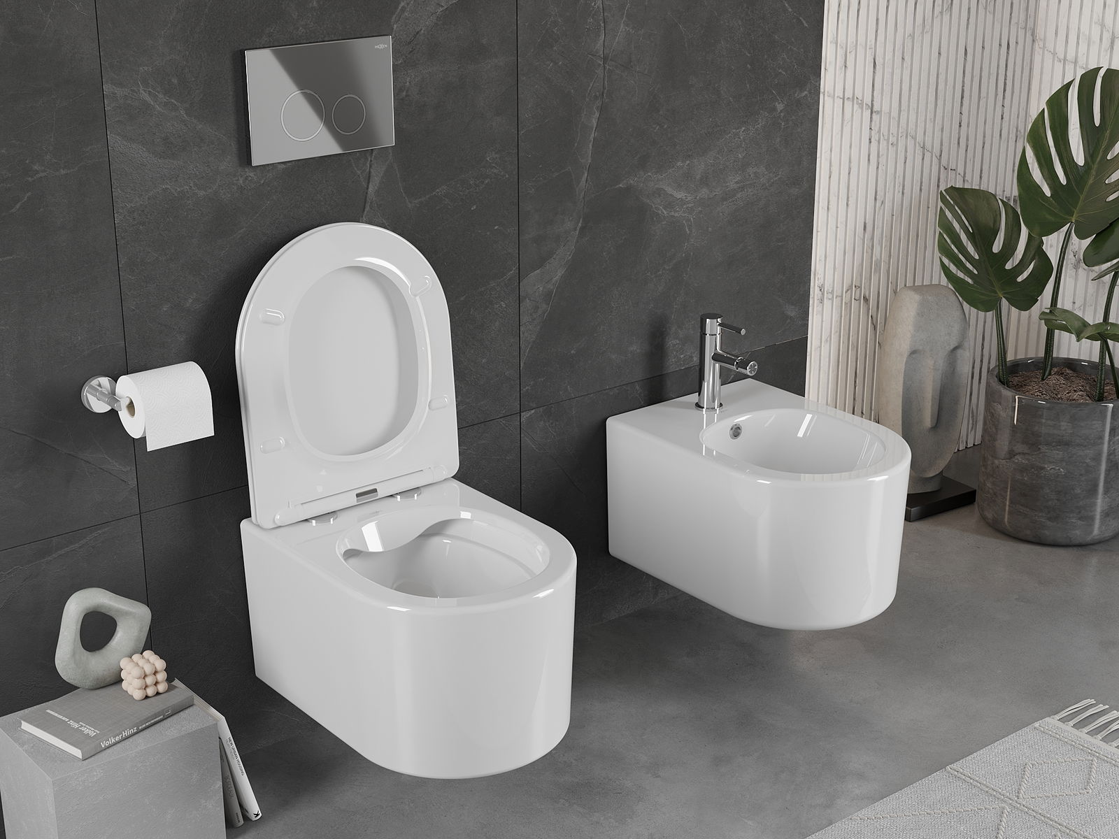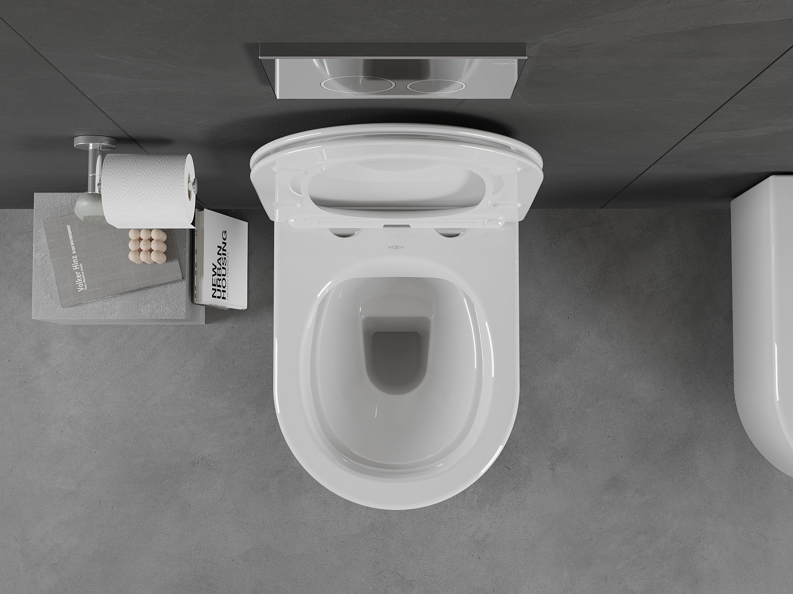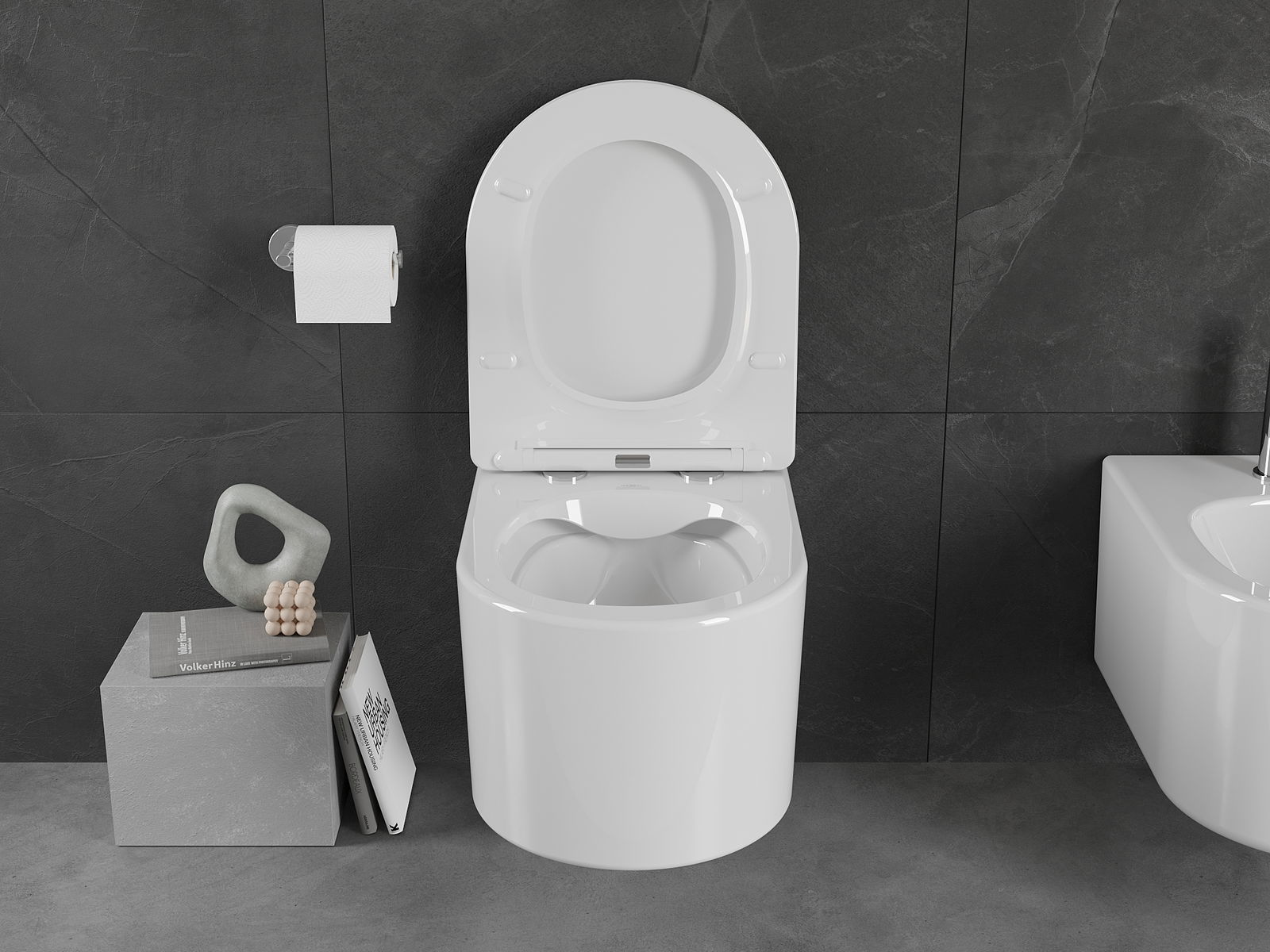 Cienka deska o wyjątkowo ergonomicznym kształcie i niezwykle smukłym wyglądzie. Konstrukcja idealnie dopasowuje się do nowoczesnego wnętrza łazienki, dając wrażenie lekkości. Doskonały wybór do minimalistycznych aranżacji.