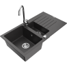 Mexen Matias zlewozmywak granitowy 1,5-komorowy z ociekaczem i baterią kuchenną Telma, czarny/srebrny - 6502-73-670200-00
