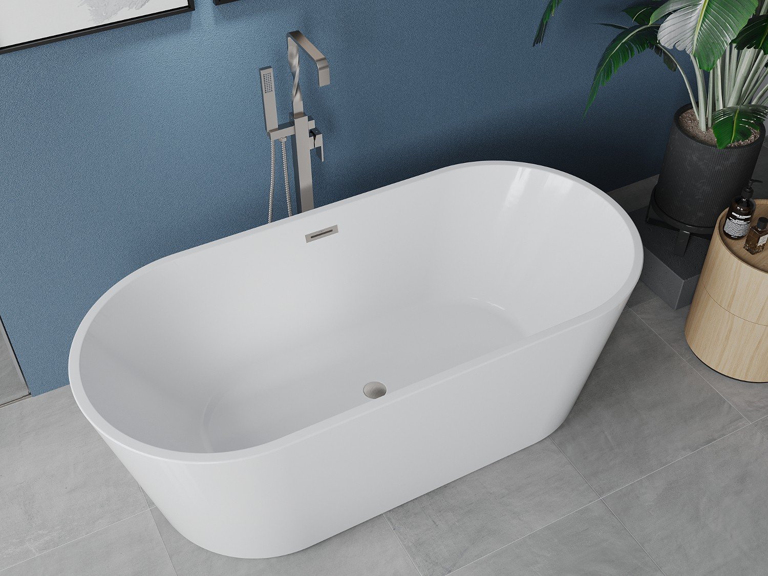 Mexen Luna wanna wolnostojąca 140 x 75 cm, biała, przelew nikiel szczotkowany - 52031407500-97