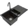 Mexen Matias zlewozmywak granitowy 1,5-komorowy z ociekaczem i baterią kuchenną Telma, czarny nakrapiany - 6502-76-670200-76