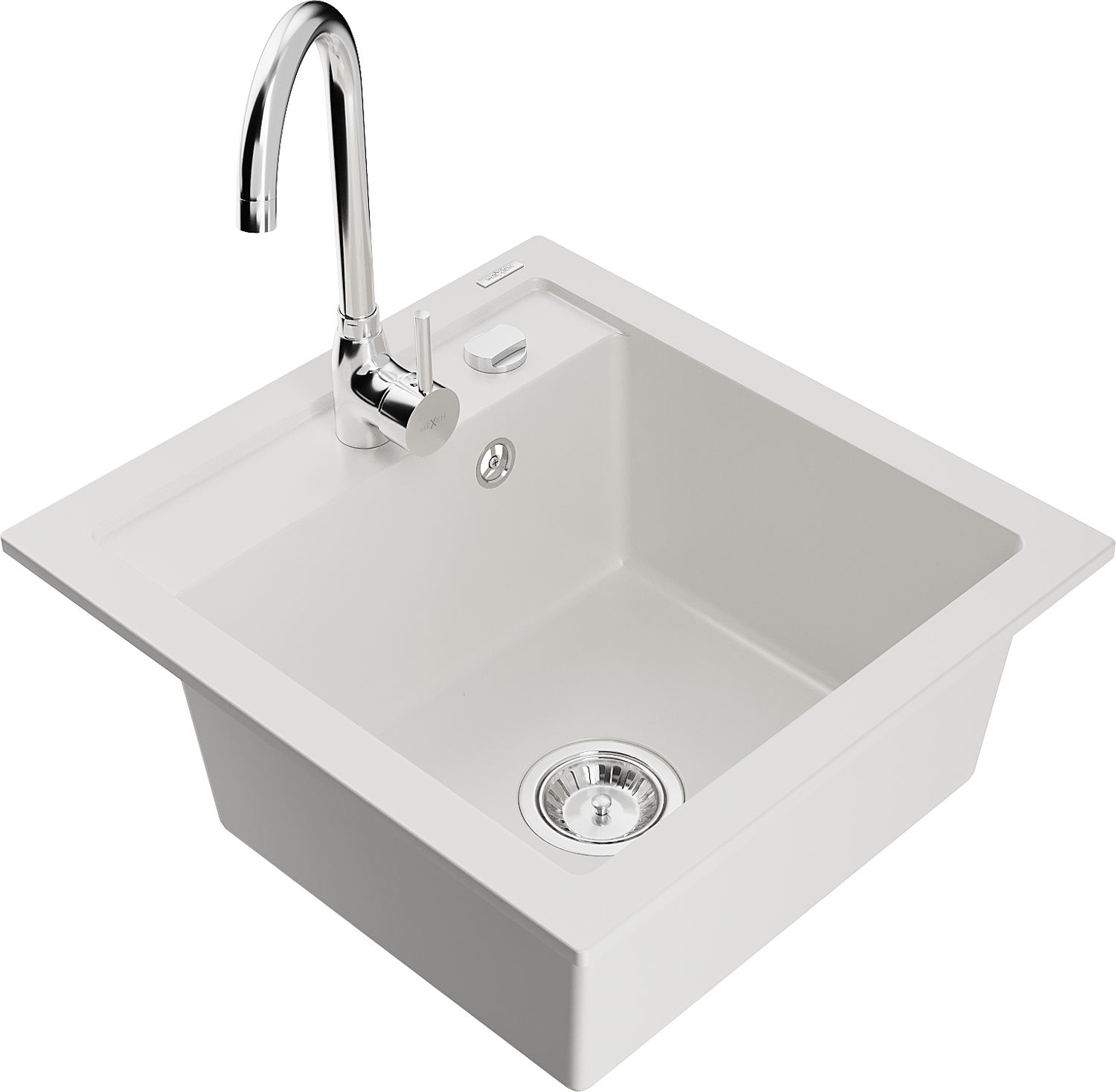 Mexen Vito zlewozmywak granitowy 1-komorowy z baterią kuchenną Telma, biały - 6503-20-670200-00