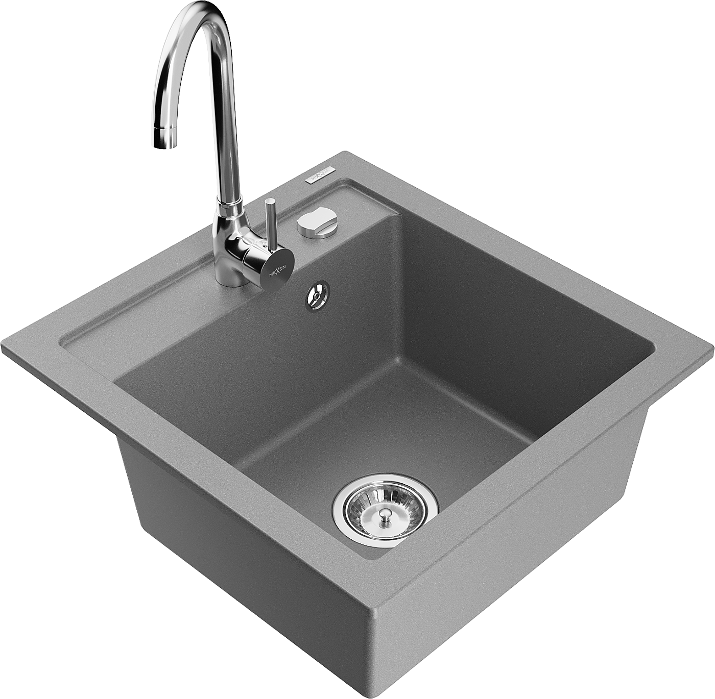 Mexen Vito zlewozmywak granitowy 1-komorowy z baterią kuchenną Telma, szary - 6503-71-670200-00
