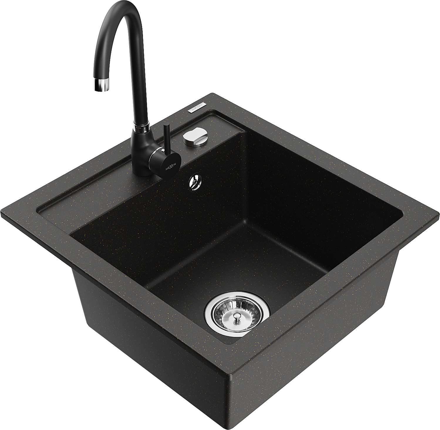 Mexen Vito zlewozmywak granitowy 1-komorowy z baterią kuchenną Telma, czarny/złoty metalik - 6503-75-670200-70