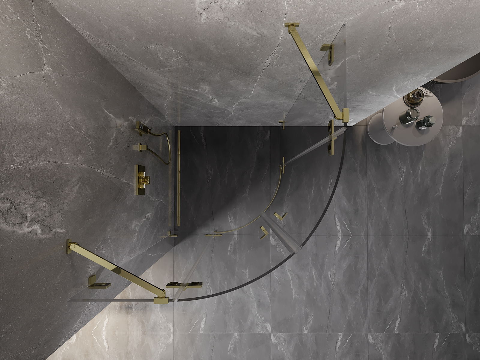 Mexen Lunar kabina prysznicowa półokrągła uchylna 70 x 70 cm, transparent, złota - 833-070L-070P-50-00
