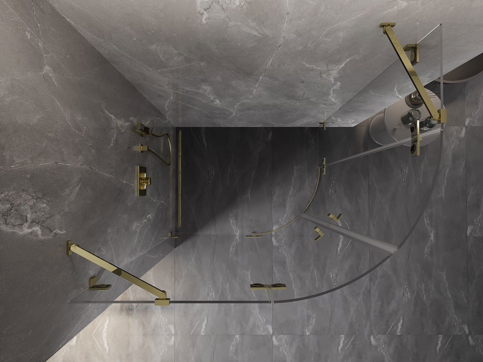 Mexen Lunar kabina prysznicowa półokrągła uchylna lewa 90 x 70 cm, transparent, złota - 833-090L-070P-50-00