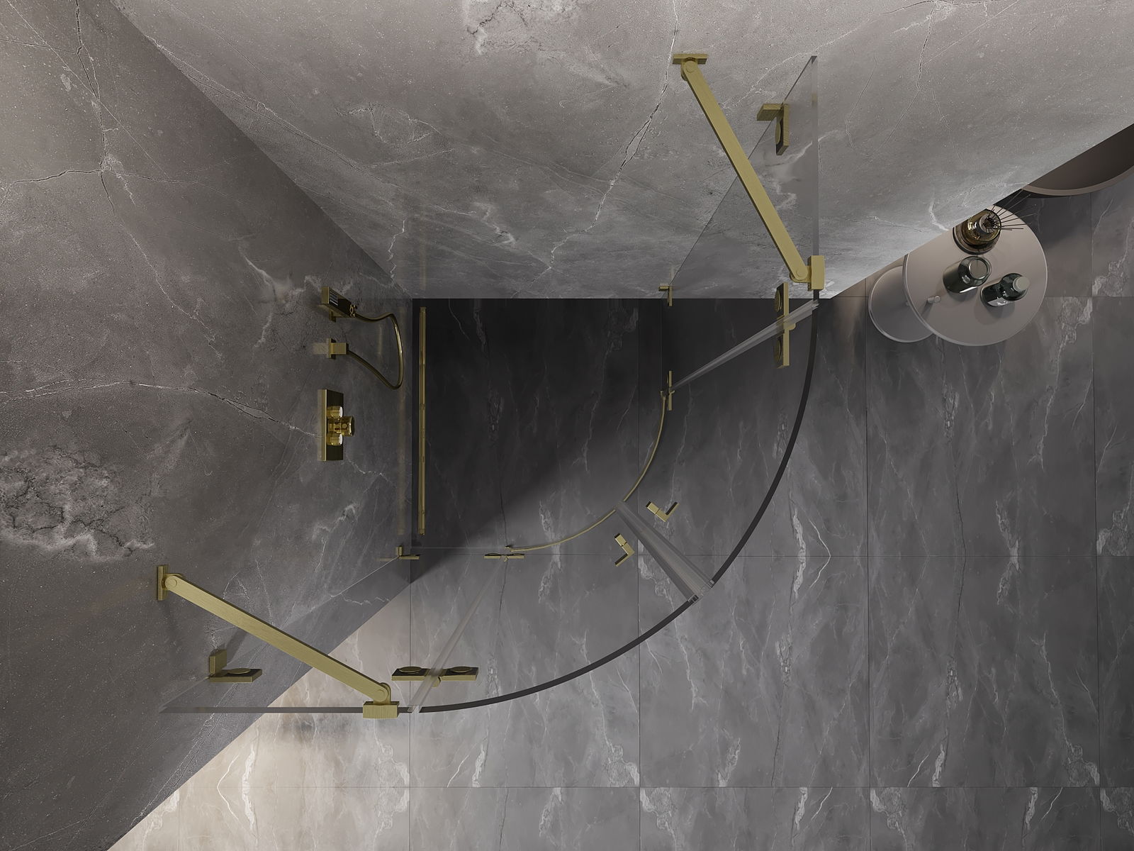 Mexen Lunar kabina prysznicowa półokrągła uchylna 80 x 80 cm, transparent, złota szczotkowana - 833-080L-080P-55-00