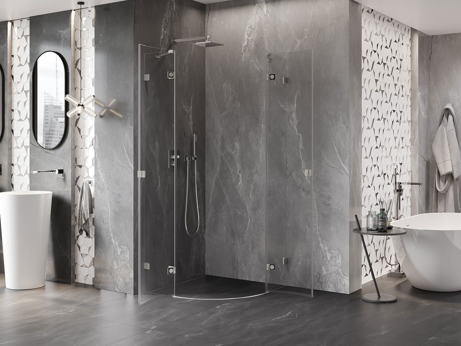 Klamry i zawiasy zostały wykonane z bardzo trwałego mosiądzu, a dodatkowo tworzą zlicowaną taflę szkła. Jest to doskonały wybór, który łączy elegancję, trwałość i nowoczesny design. Dzięki takim rozwiązaniom prysznic zyskuje na estetyce, a jednocześnie ułatwiają utrzymanie czystości.