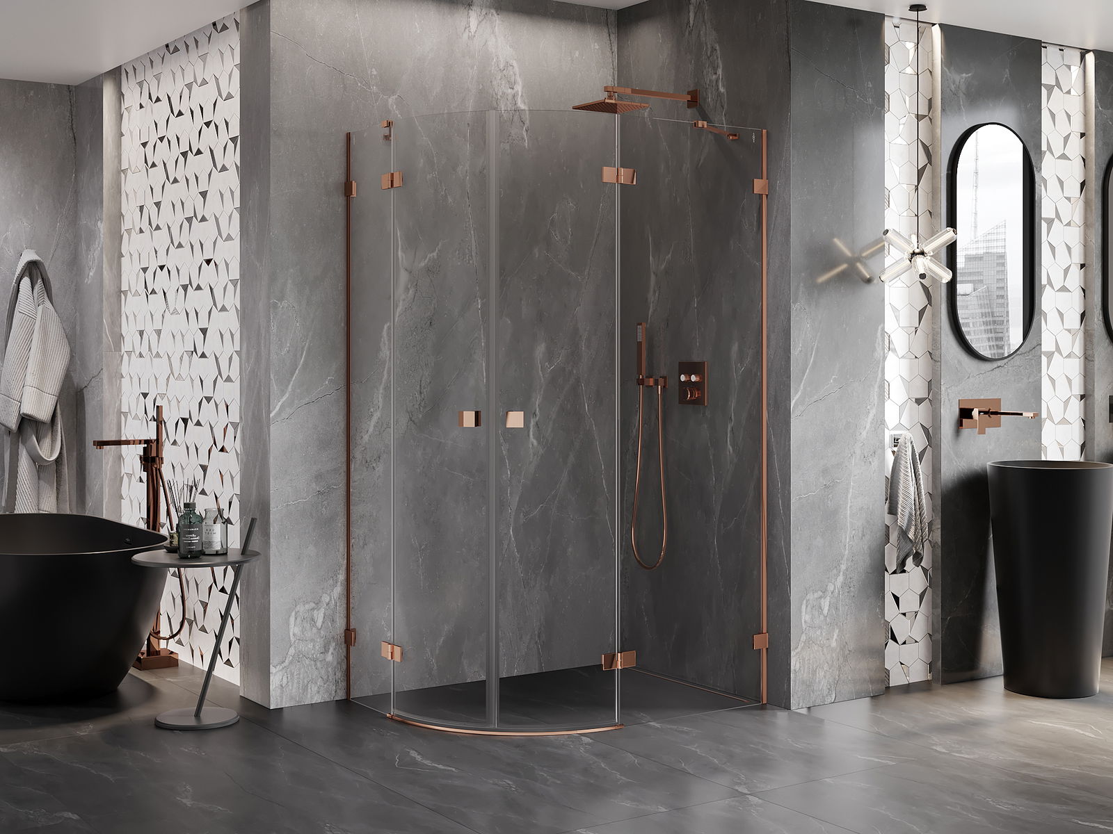Mexen Lunar kabina prysznicowa półokrągła uchylna prawa 100 x 70 cm, transparent, różowe złoto - 833-100P-070L-60-00