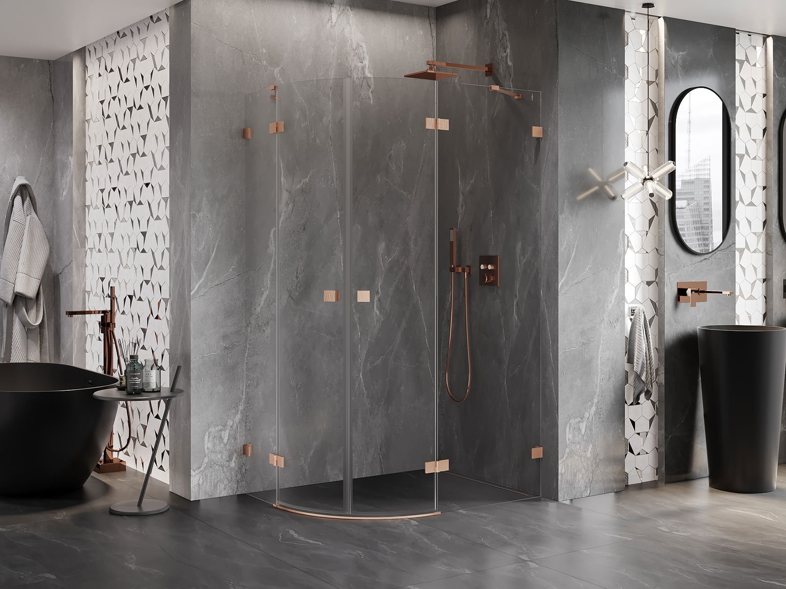 Mexen Lunar kabina prysznicowa półokrągła uchylna prawa 90 x 70 cm, transparent, miedź szczotkowana - 833-090P-070L-65-00