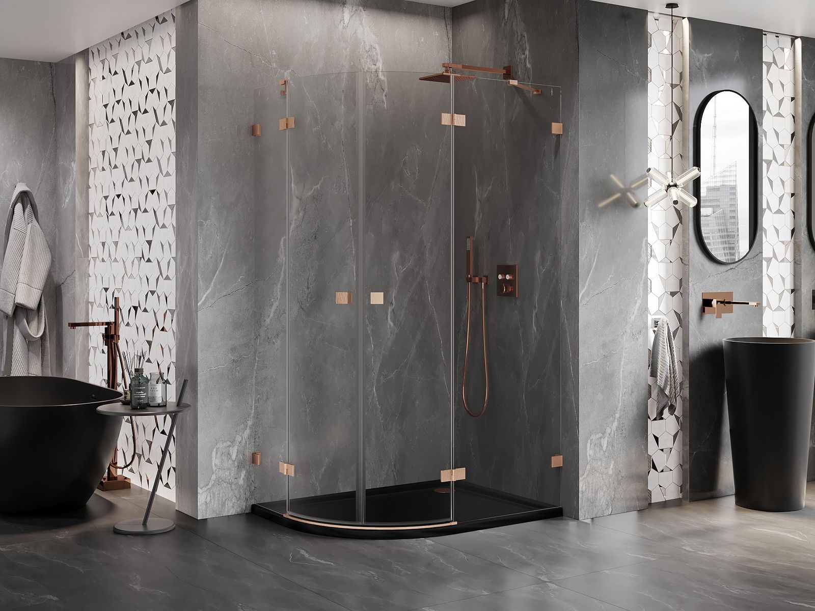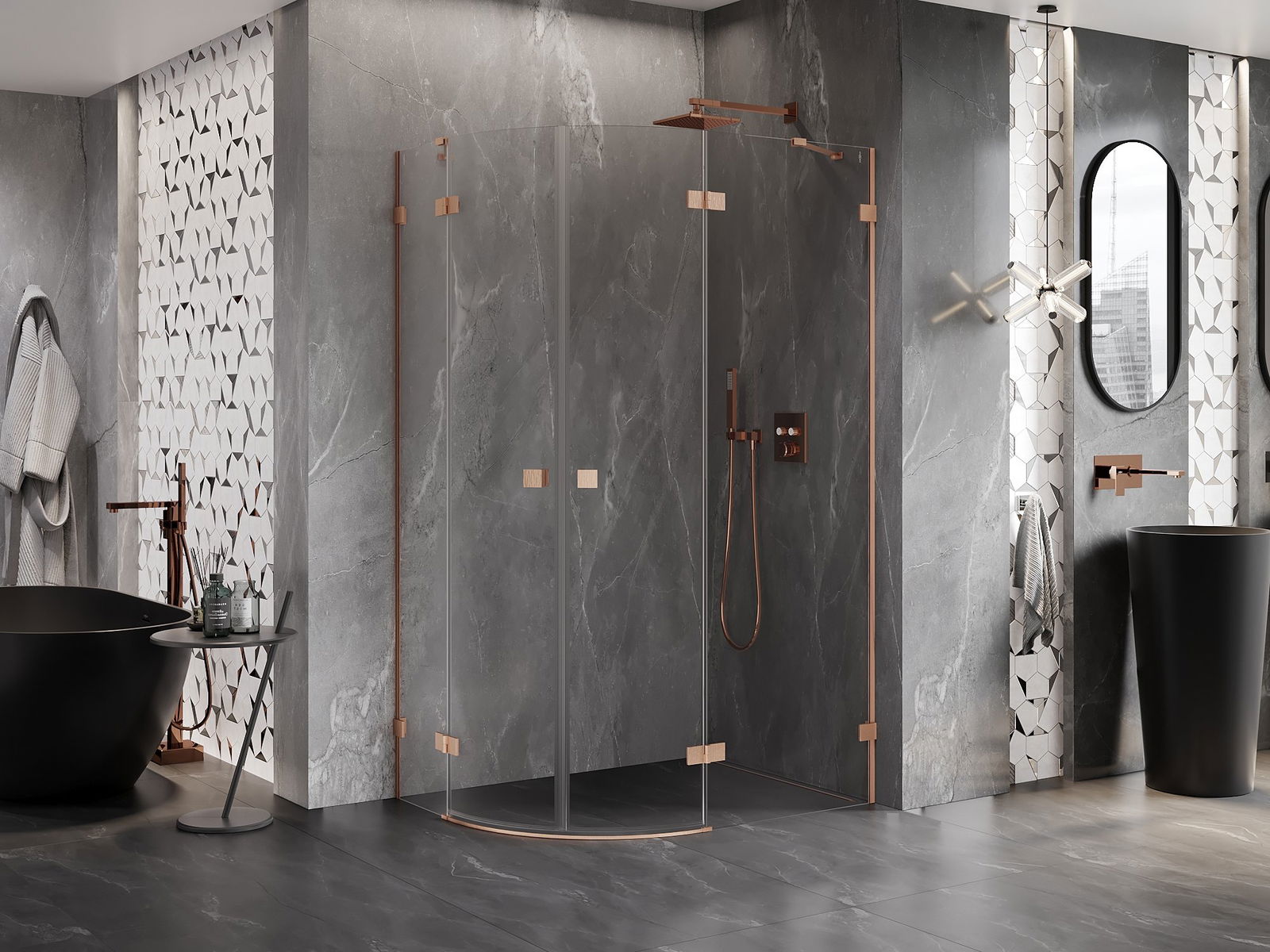 Mexen Lunar kabina prysznicowa półokrągła uchylna prawa 90 x 80 cm, transparent, miedź szczotkowana - 833-090P-080L-65-00