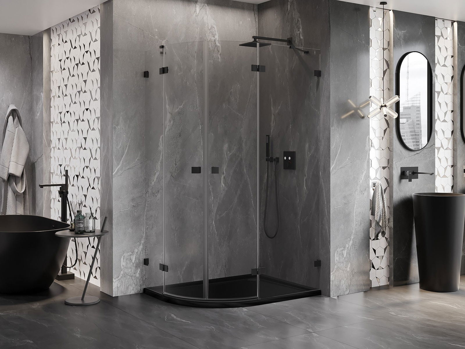 Poręczny i wygodny uchwyt został wykonany z trwałego i odpornego metalu. Modny kształt w połączeniu z wykończeniem dopasowanym do koloru profili nadaje całości nowoczesnego i stylowego wyglądu, podkreślając estetykę każdej łazienki.