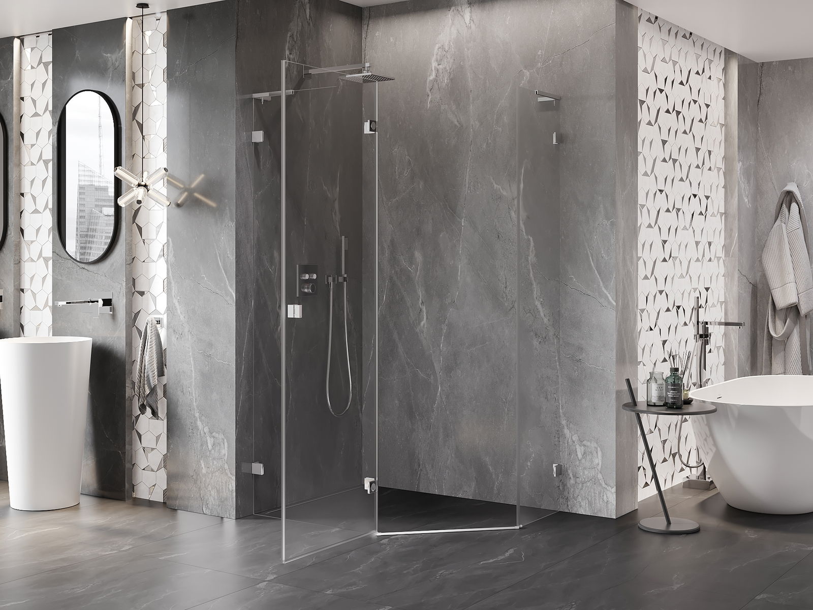 Klamry i zawiasy zostały wykonane z bardzo trwałego mosiądzu, a dodatkowo tworzą zlicowaną taflę szkła. Jest to doskonały wybór, który łączy elegancję, trwałość i nowoczesny design. Dzięki takim rozwiązaniom prysznic zyskuje na estetyce, a jednocześnie ułatwiają utrzymanie czystości.