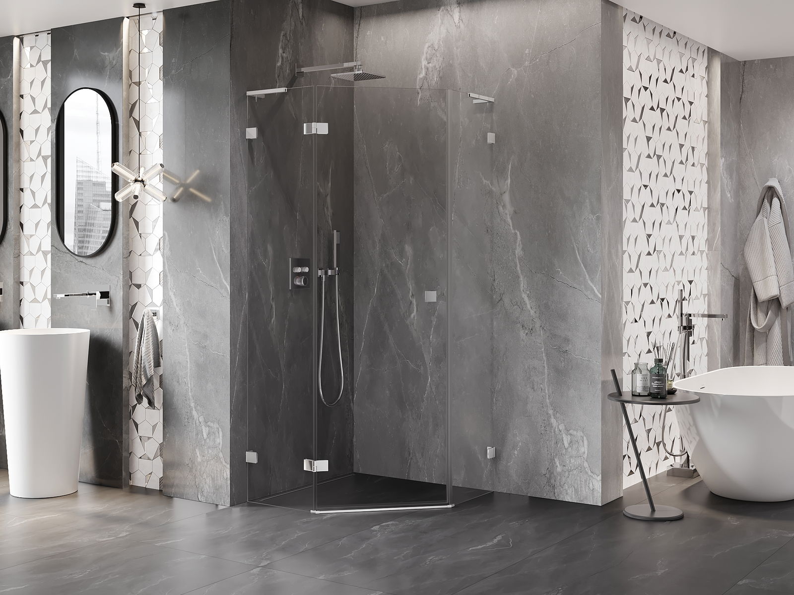 Mexen Lunar L kabina prysznicowa pięciokątna uchylna lewa 90 x 90 cm, transparent, chrom - 831L-090L-090P-01-00-L