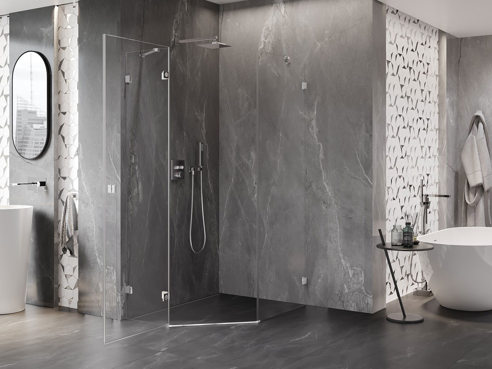 Klamry i zawiasy zostały wykonane z bardzo trwałego mosiądzu, a dodatkowo tworzą zlicowaną taflę szkła. Jest to doskonały wybór, który łączy elegancję, trwałość i nowoczesny design. Dzięki takim rozwiązaniom prysznic zyskuje na estetyce, a jednocześnie ułatwiają utrzymanie czystości.