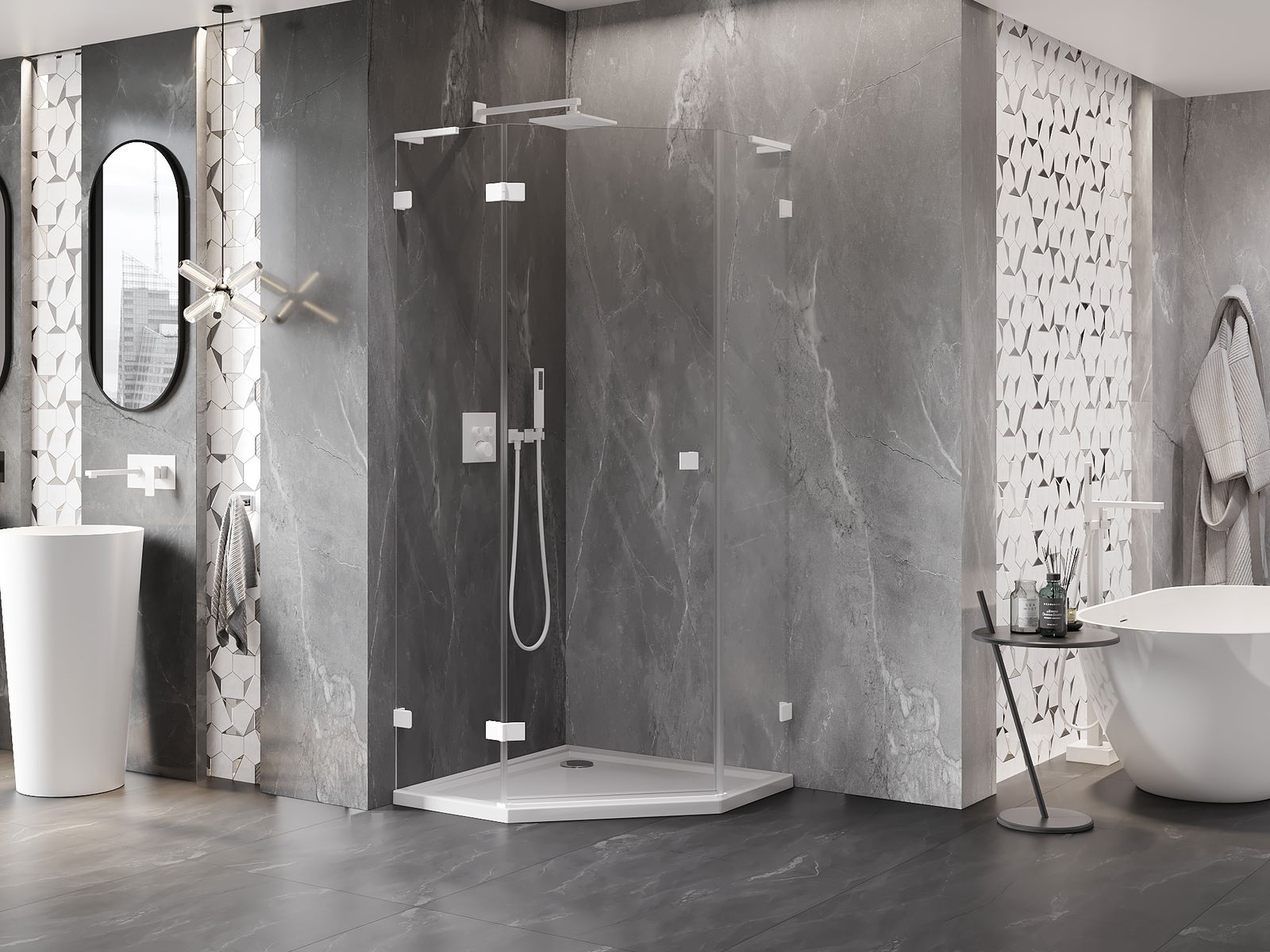 Mexen Lunar L kabina prysznicowa pięciokątna uchylna lewa 90 x 90 cm, transparent, biała - 831L-090L-090P-20-00-L