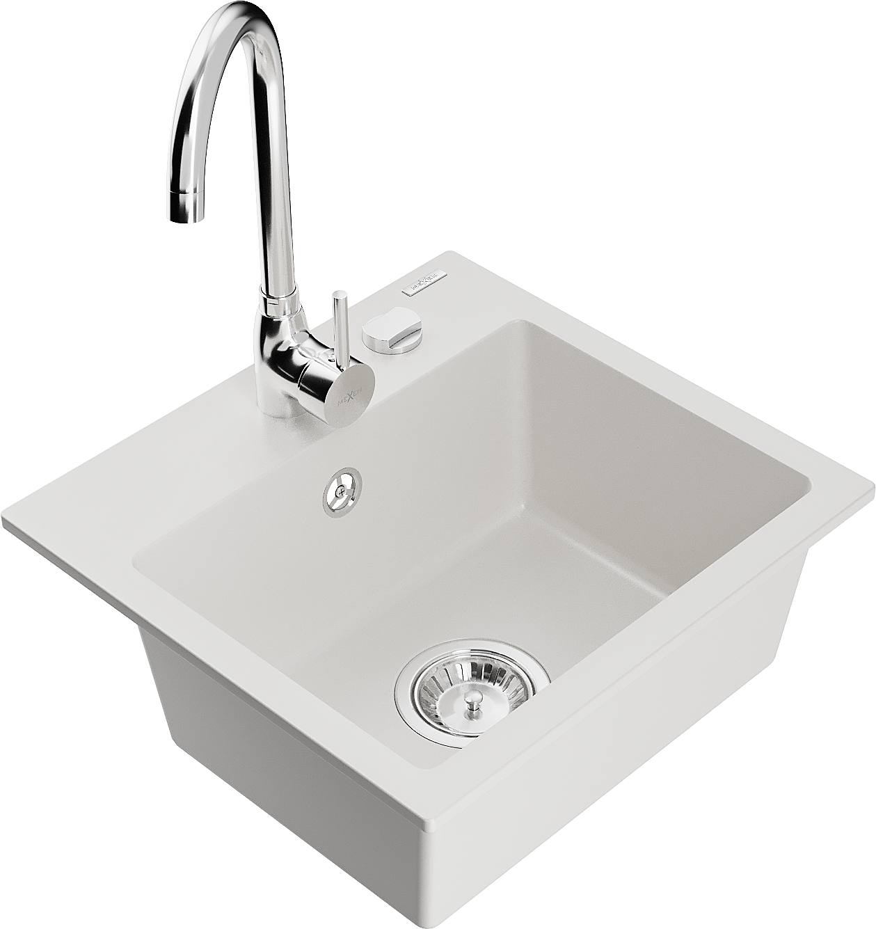 Mexen Milo zlewozmywak granitowy 1-komorowy z baterią kuchenną Telma, biały - 6505-20-670200-00