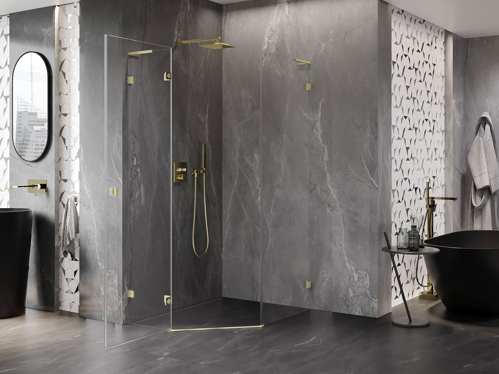 Klamry i zawiasy zostały wykonane z bardzo trwałego mosiądzu, a dodatkowo tworzą zlicowaną taflę szkła. Jest to doskonały wybór, który łączy elegancję, trwałość i nowoczesny design. Dzięki takim rozwiązaniom prysznic zyskuje na estetyce, a jednocześnie ułatwiają utrzymanie czystości.