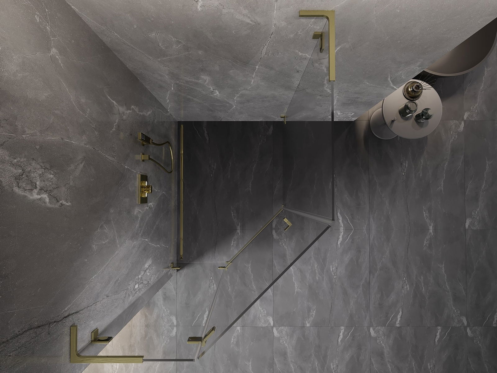 Mexen Lunar L kabina prysznicowa pięciokątna uchylna lewa 80 x 90 cm, transparent, złota szczotkowana - 831L-080L-090P-55-00-L