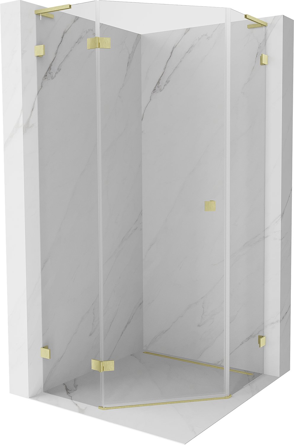 Mexen Lunar L kabina prysznicowa pięciokątna uchylna lewa 90 x 90 cm, transparent, złota szczotkowana - 831L-090L-090P-55-00-L