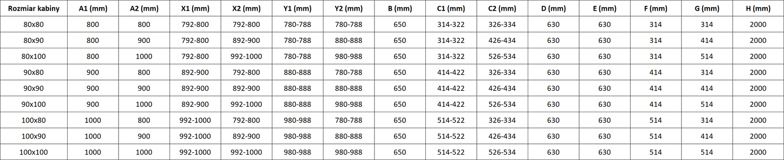 Rozmiar: 100x90 cm (drzwi lewe 100 cm, ścianka 90 cm)