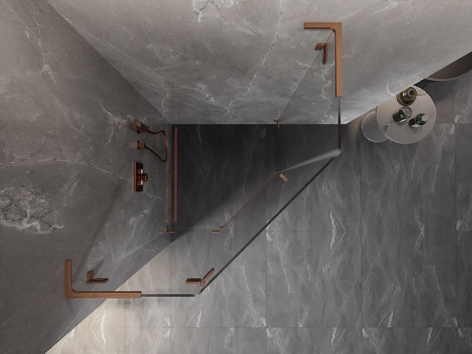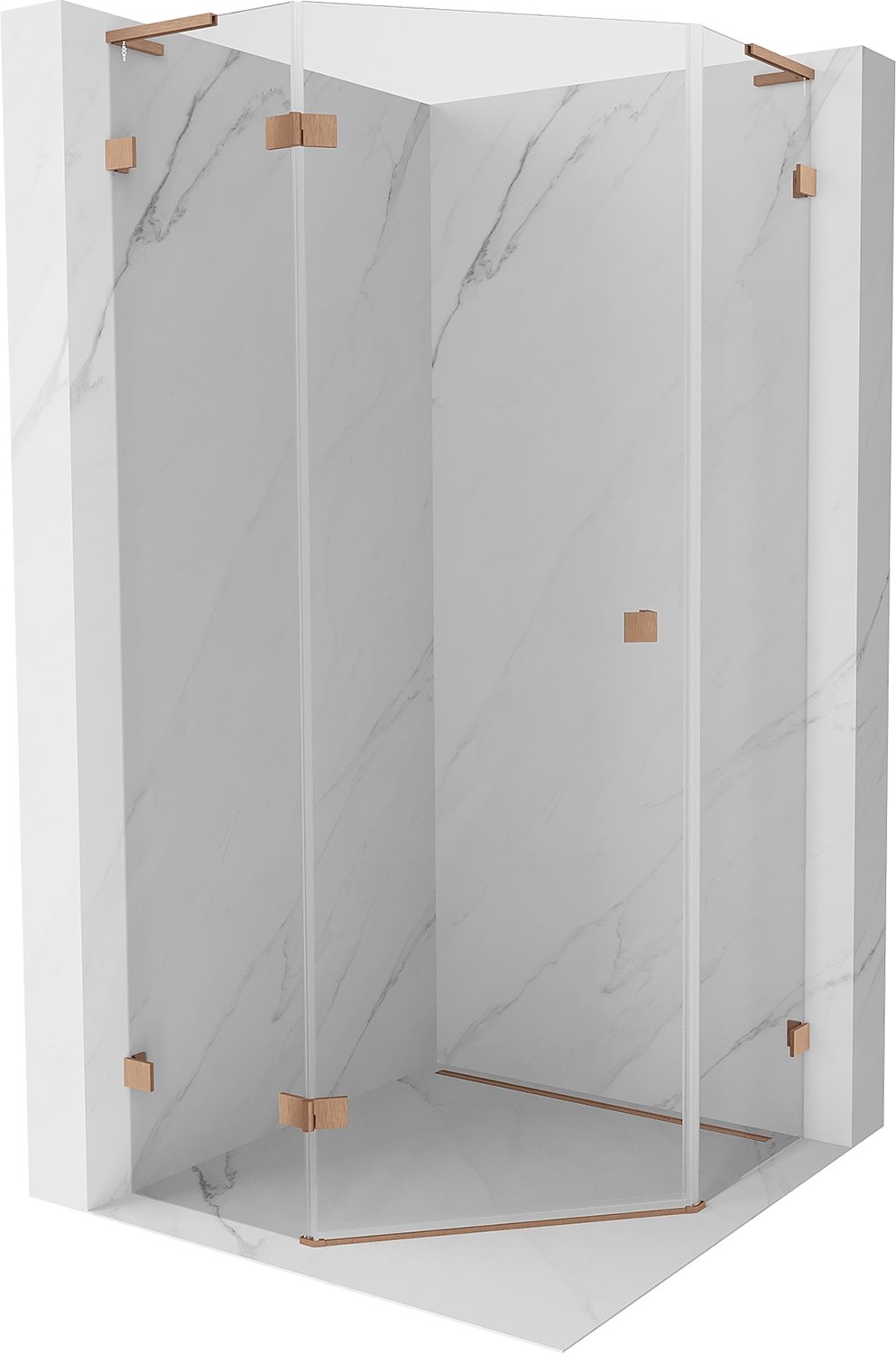 Mexen Lunar L kabina prysznicowa pięciokątna uchylna lewa 90 x 90 cm, transparent, miedź szczotkowana - 831L-090L-090P-65-00-L