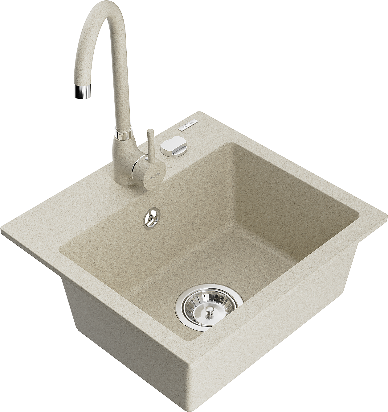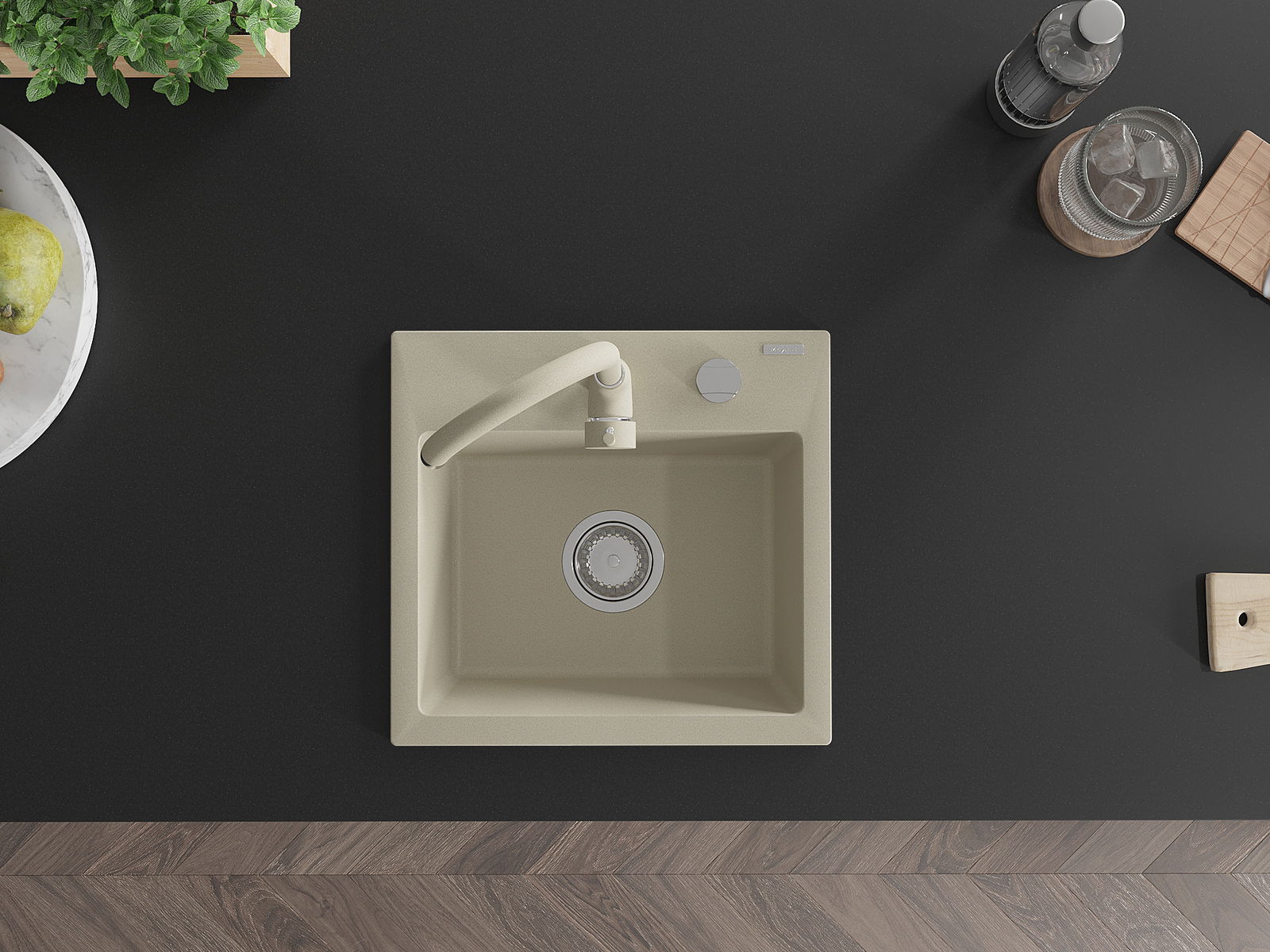 Mexen Milo zlewozmywak granitowy 1-komorowy z baterią kuchenną Telma, beżowy - 6505-69-670200-69