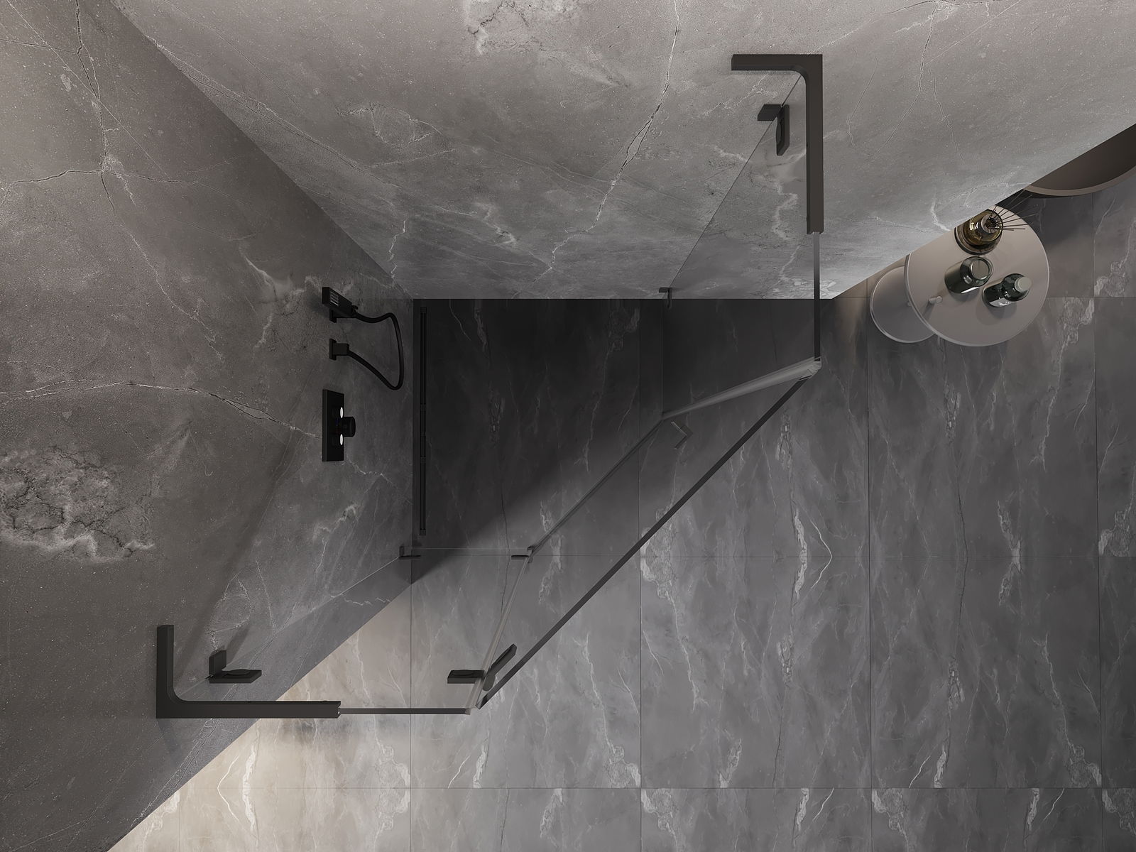 Poręczny i wygodny uchwyt został wykonany z trwałego i odpornego metalu. Modny kształt w połączeniu z wykończeniem dopasowanym do koloru profili nadaje całości nowoczesnego i stylowego wyglądu, podkreślając estetykę każdej łazienki.