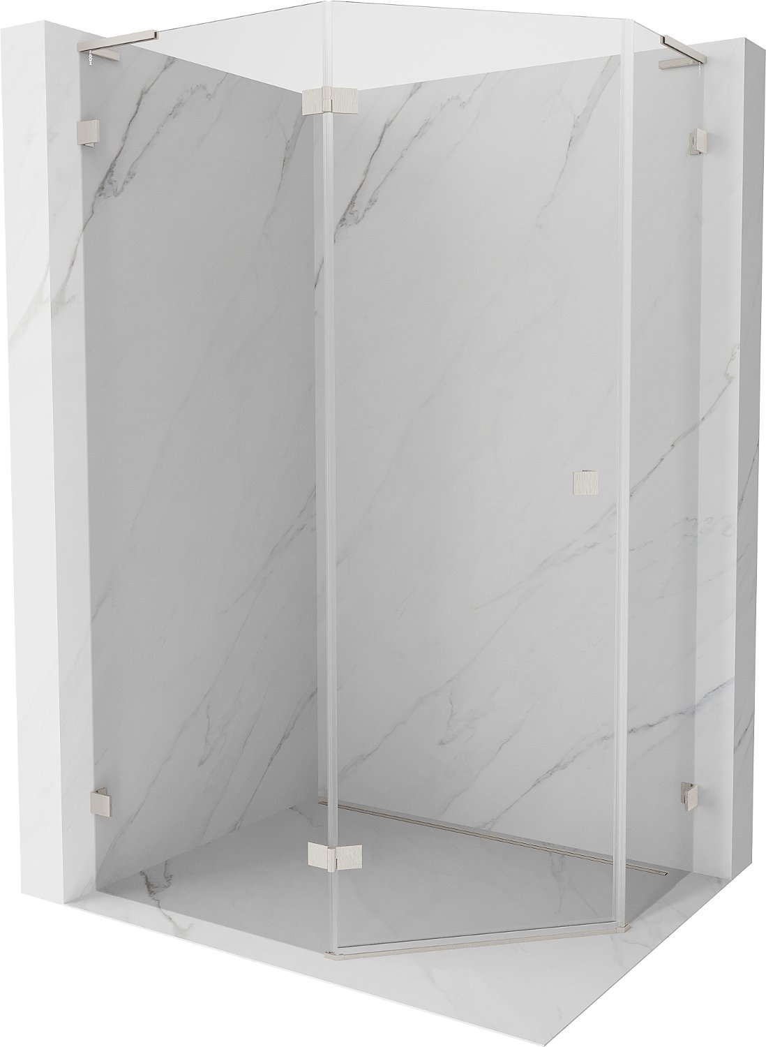 Mexen Lunar L kabina prysznicowa pięciokątna uchylna lewa 100 x 80 cm, transparent, nikiel szczotkowany - 831L-100L-080P-97-00-L