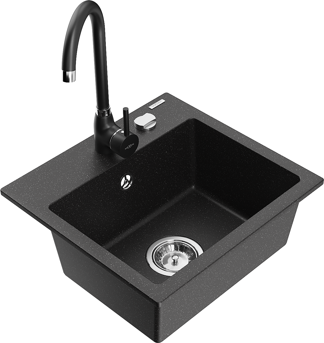 Mexen Milo zlewozmywak granitowy 1-komorowy z baterią kuchenną Telma, czarny/srebrny - 6505-73-670200-70