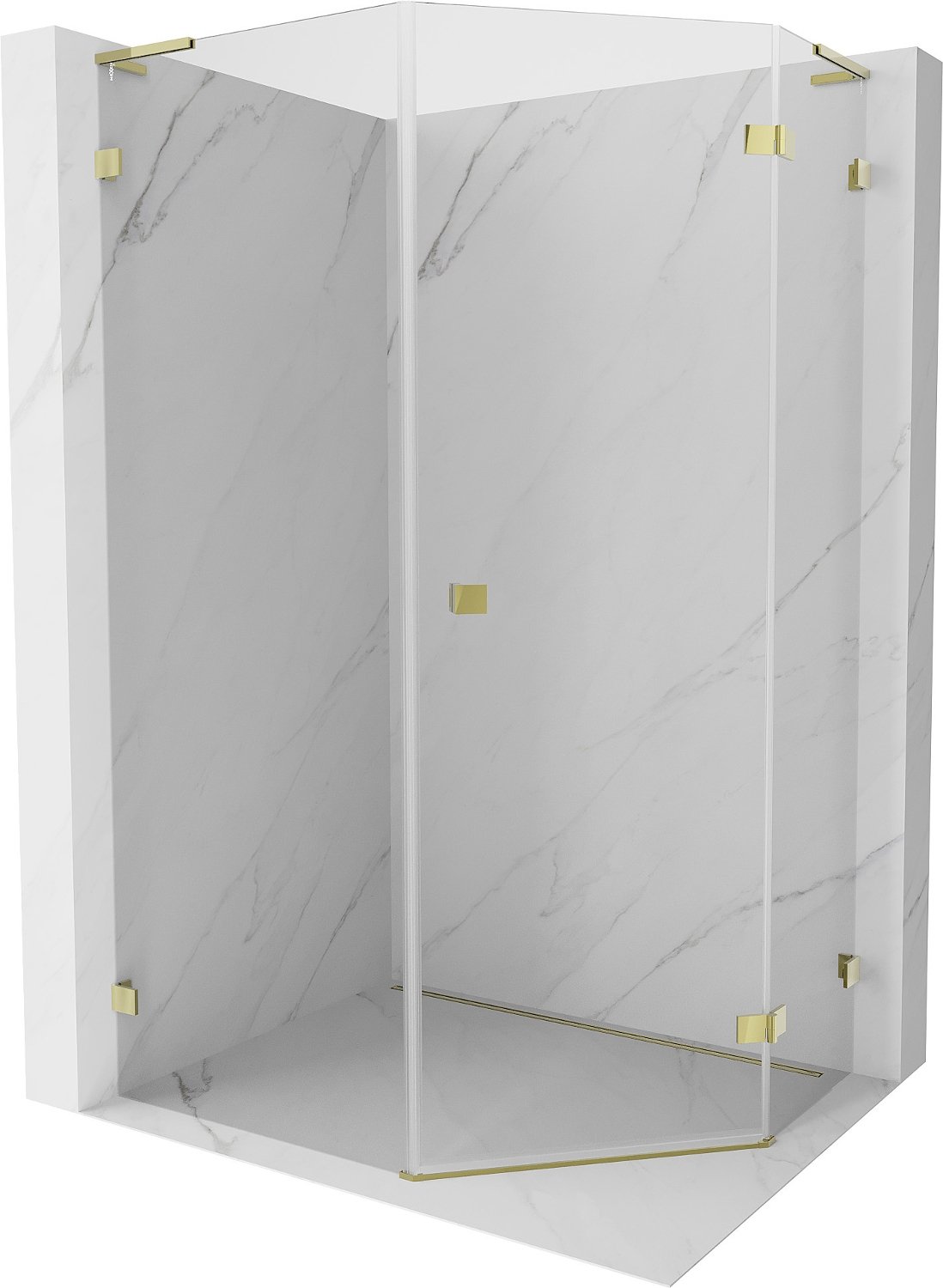 Mexen Lunar L kabina prysznicowa pięciokątna uchylna prawa 80 x 90 cm, transparent, złota - 831L-080P-090L-50-00-P