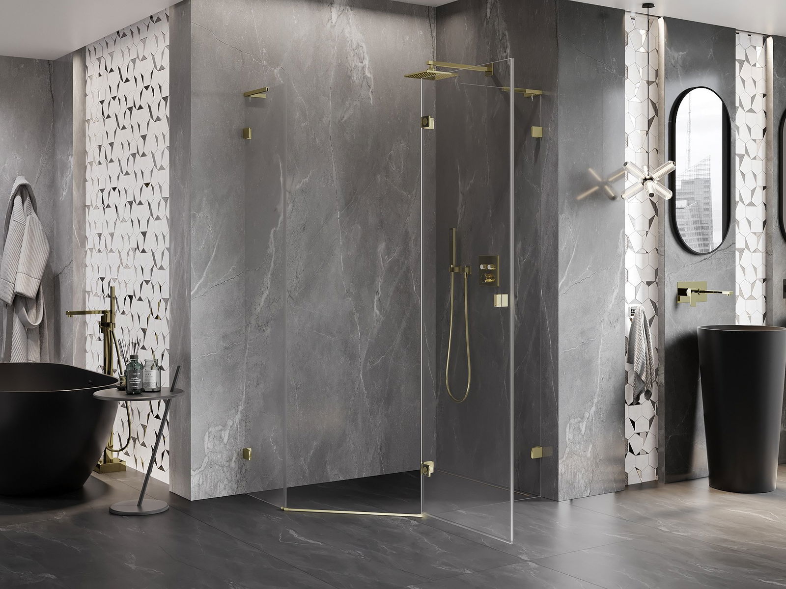Klamry i zawiasy zostały wykonane z bardzo trwałego mosiądzu, a dodatkowo tworzą zlicowaną taflę szkła. Jest to doskonały wybór, który łączy elegancję, trwałość i nowoczesny design. Dzięki takim rozwiązaniom prysznic zyskuje na estetyce, a jednocześnie ułatwiają utrzymanie czystości.