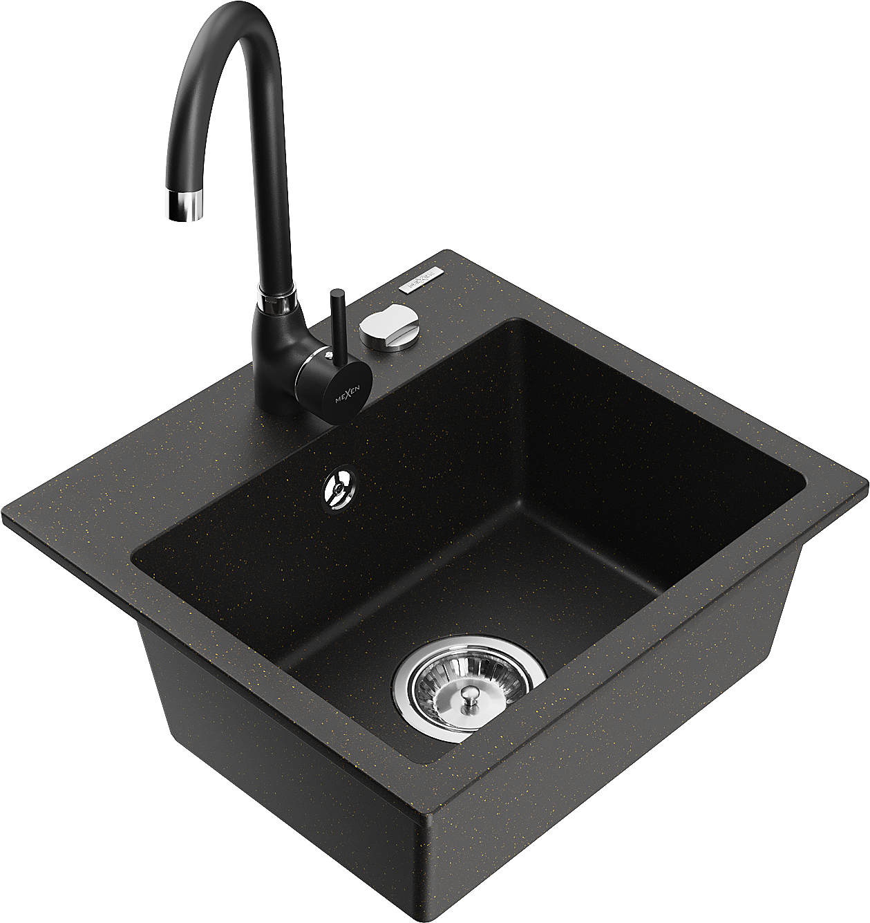 Mexen Milo zlewozmywak granitowy 1-komorowy z baterią kuchenną Telma, czarny/złoty - 6505-75-670200-70