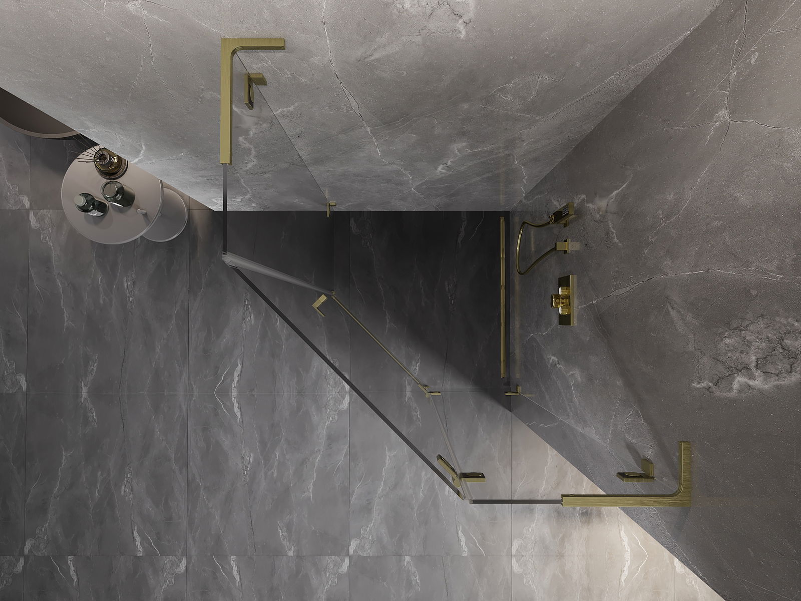 Mexen Lunar L kabina prysznicowa pięciokątna uchylna prawa 90 x 90 cm, transparent, złota szczotkowana - 831L-090P-090L-55-00-P