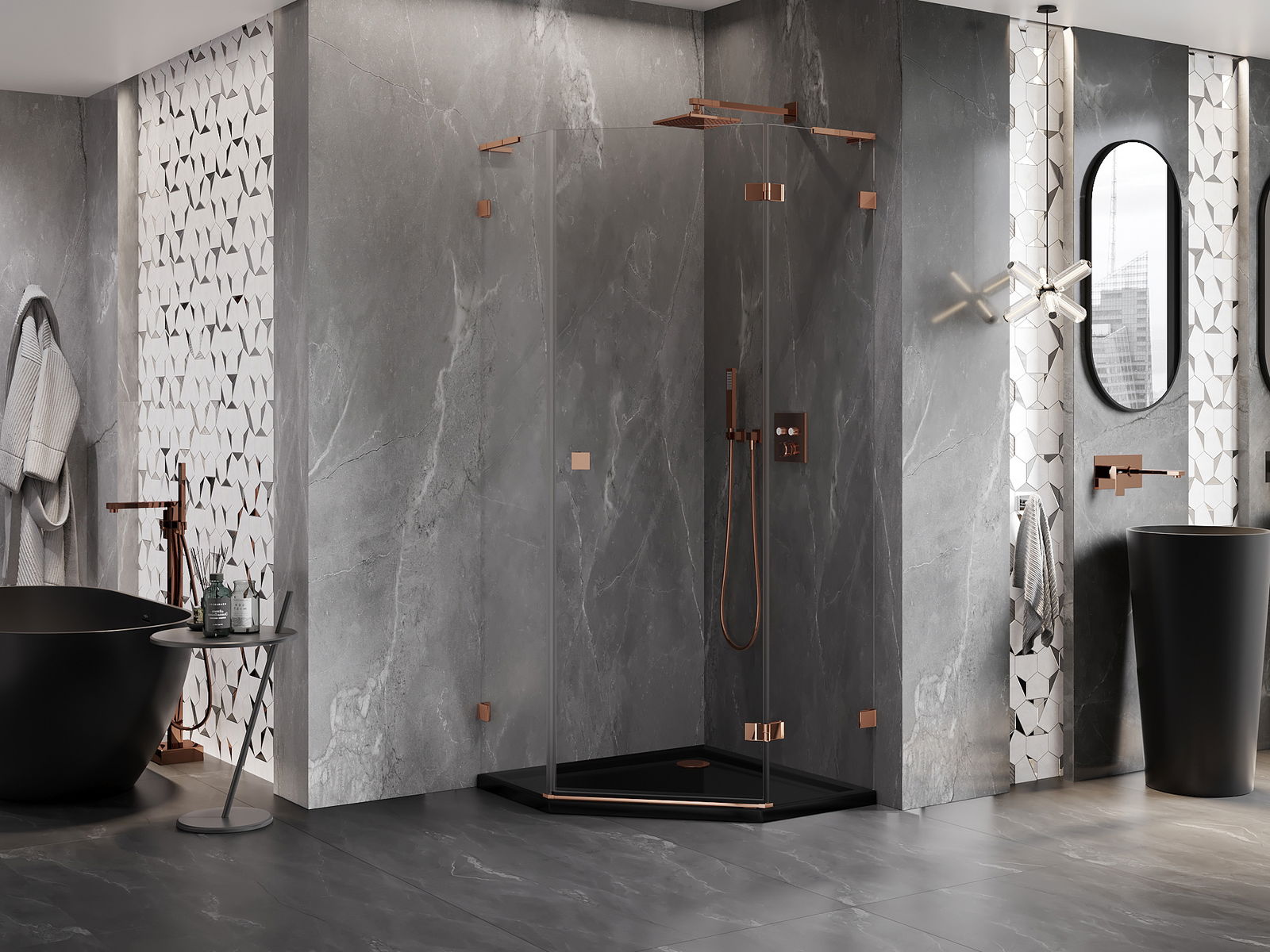 Mexen Lunar L kabina prysznicowa pięciokątna uchylna prawa 80 x 80 cm, transparent, różowe złoto - 831L-080P-080L-60-00-P