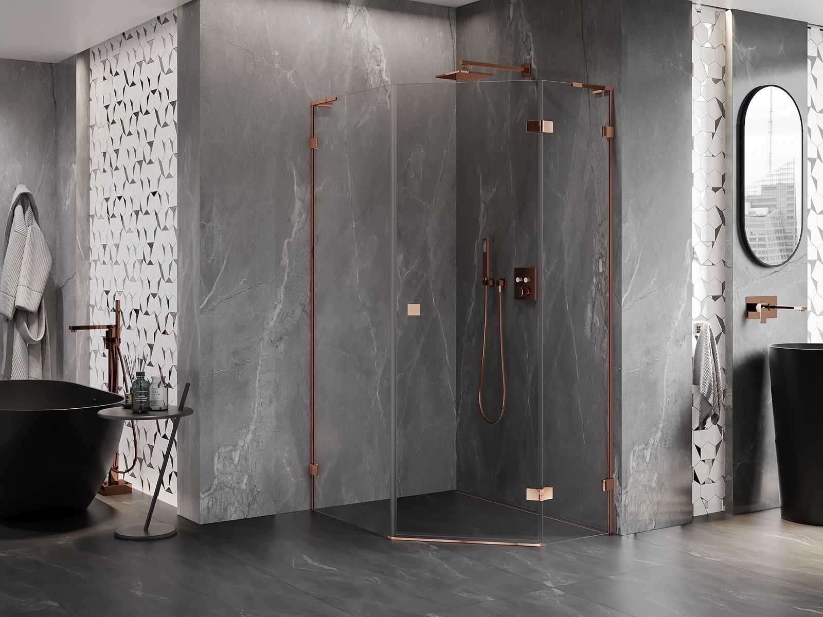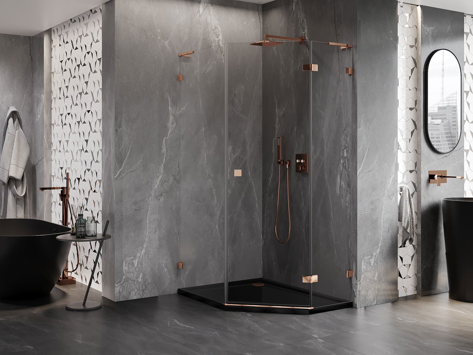 Mexen Lunar L kabina prysznicowa pięciokątna uchylna prawa 80 x 90 cm, transparent, różowe złoto - 831L-080P-090L-60-00-P