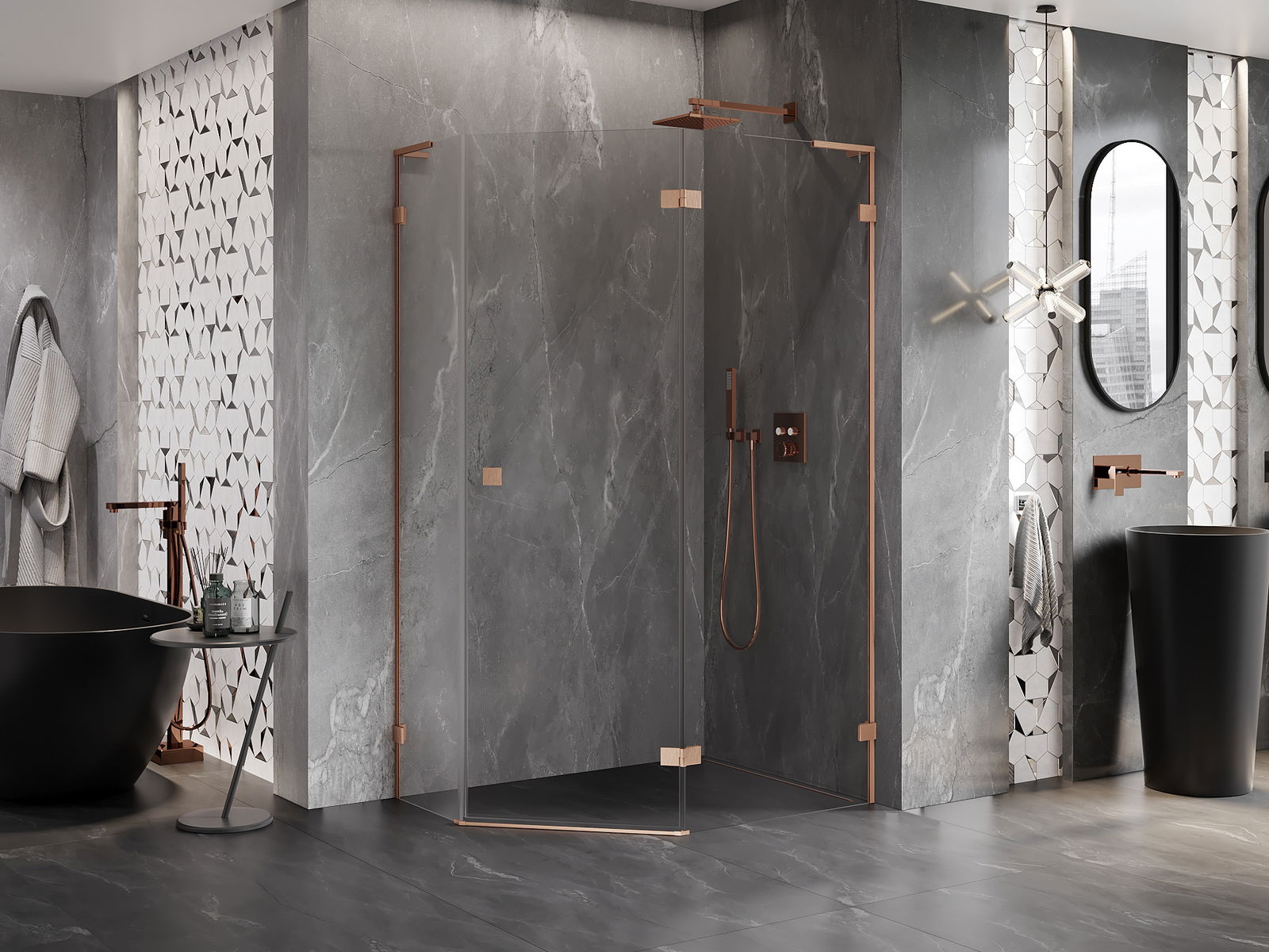 Mexen Lunar L kabina prysznicowa pięciokątna uchylna prawa 100 x 90 cm, transparent, miedź szczotkowana - 831L-100P-090L-65-00-P