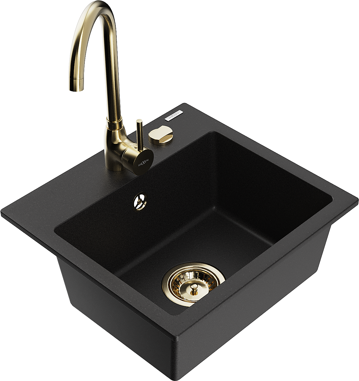 Mexen Milo zlewozmywak granitowy 1-komorowy z baterią kuchenną Telma, czarny - 6505-77-670200-50
