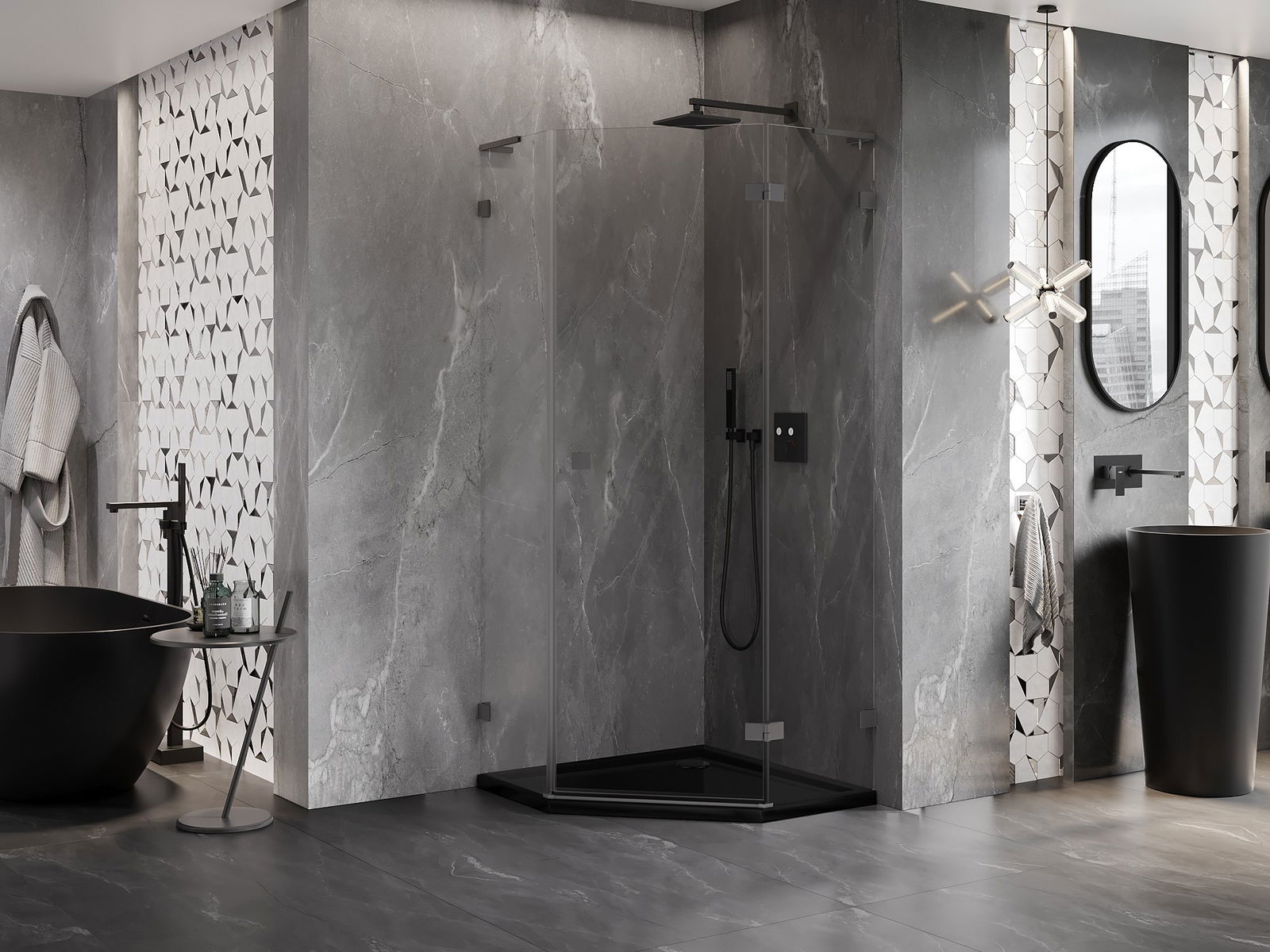Mexen Lunar L kabina prysznicowa pięciokątna uchylna prawa 80 x 80 cm, transparent, gun metal - 831L-080P-080L-95-00-P