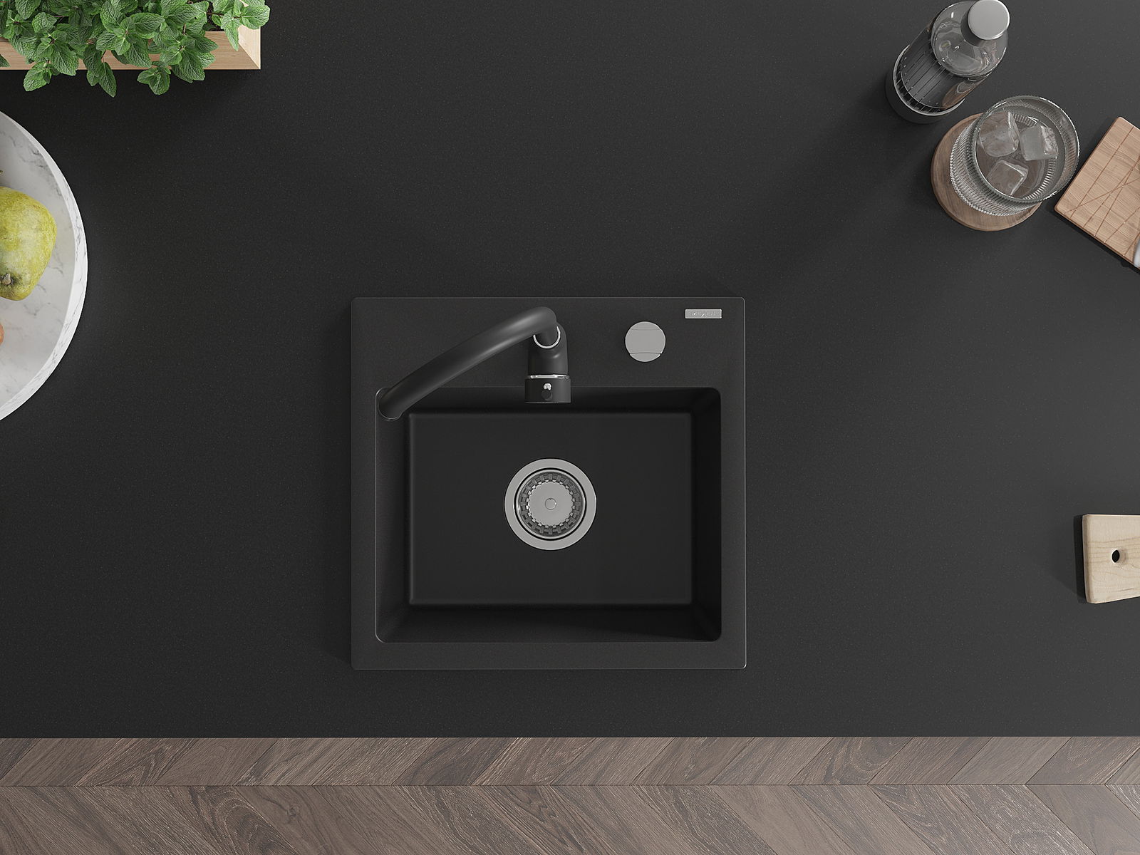 Zlew posiada podfrezowany otwór o średnicy 35 mm do samodzielnego wybicia. Można go wykorzystać m.in. do montażu dozownika na płyn, który wyeliminuje obecność plastikowych butelek w kuchni i nada jej eleganckiego wykończenia.