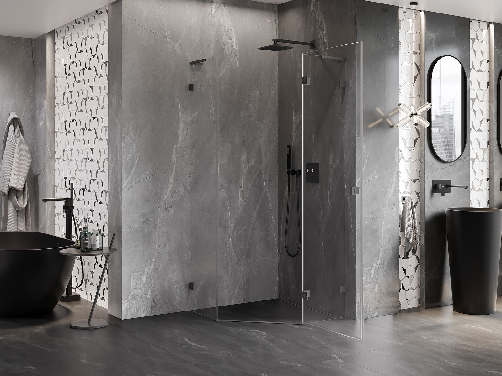 Mexen Lunar L kabina prysznicowa pięciokątna uchylna prawa 90 x 90 cm, transparent, gun metal - 831L-090P-090L-95-00-P