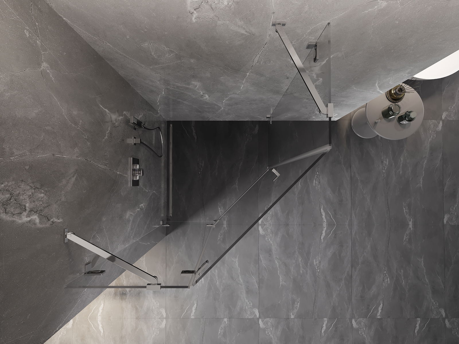 Rozmiar: 90x90 cm (drzwi lewe 90 cm, ścianka 90 cm)