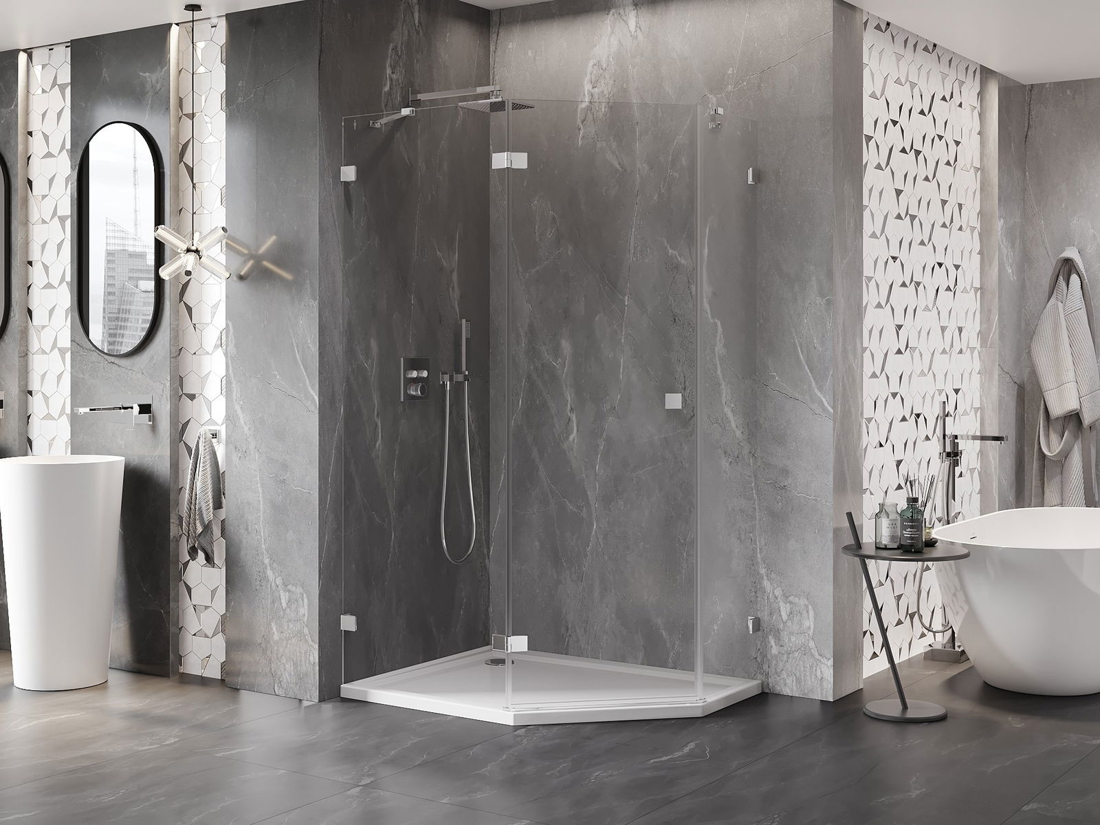 Mexen Lunar kabina prysznicowa pięciokątna uchylna lewa 100 x 80 cm, transparent, chrom - 831-100L-080P-01-00-L