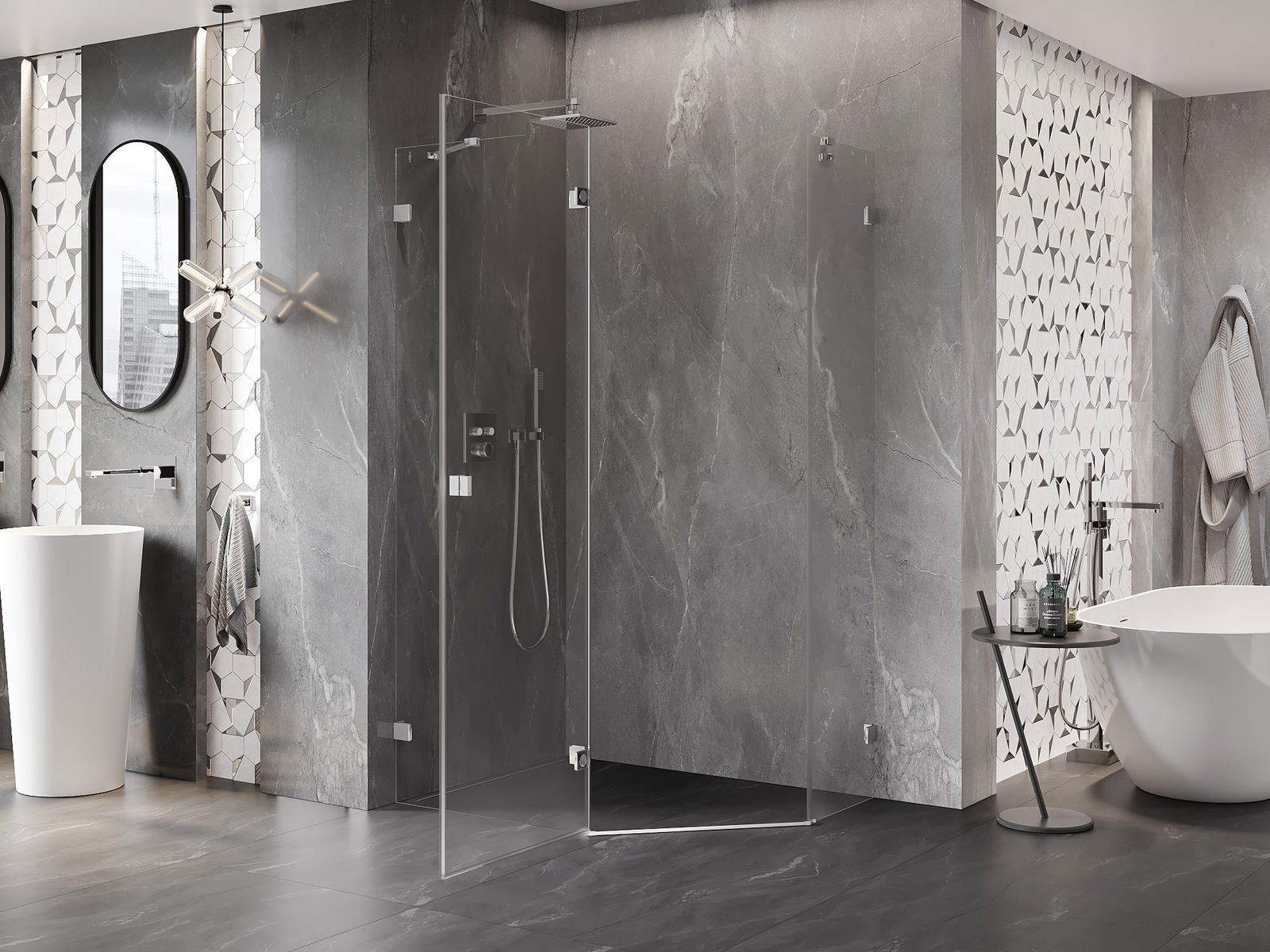 Klamry i zawiasy zostały wykonane z bardzo trwałego mosiądzu, a dodatkowo tworzą zlicowaną taflę szkła. Jest to doskonały wybór, który łączy elegancję, trwałość i nowoczesny design. Dzięki takim rozwiązaniom prysznic zyskuje na estetyce, a jednocześnie ułatwiają utrzymanie czystości.