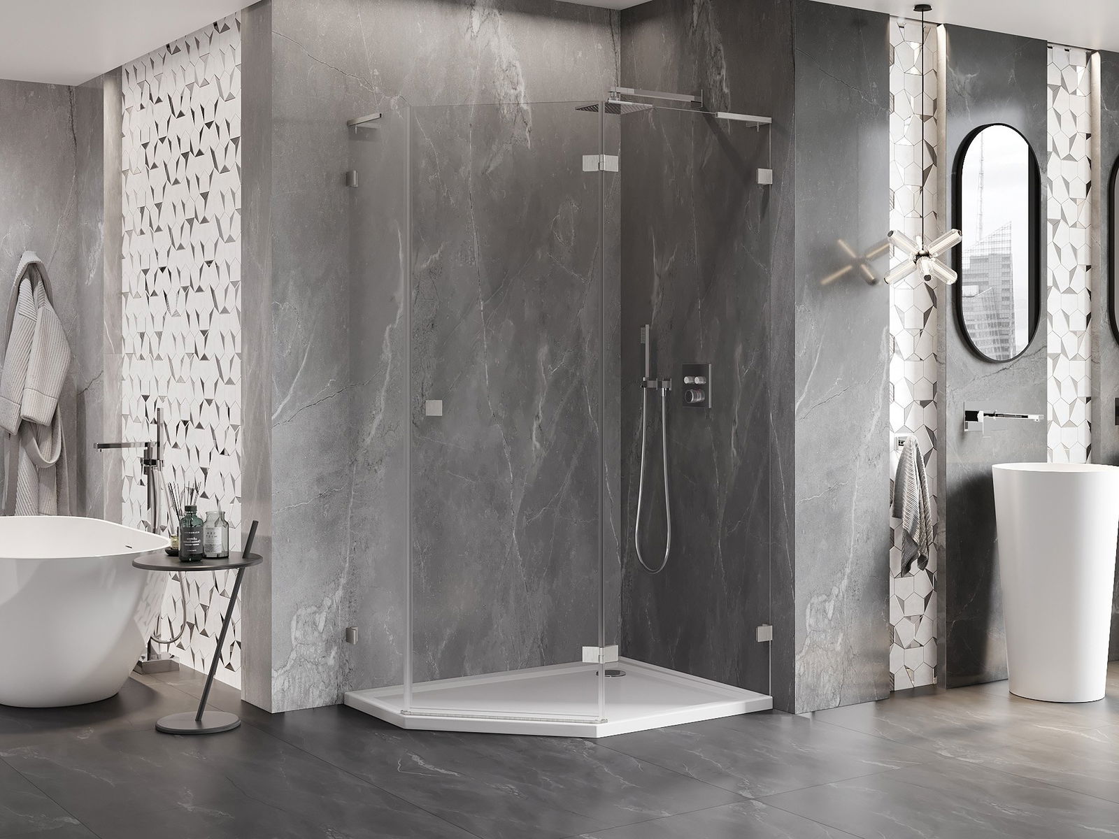Mexen Lunar L kabina prysznicowa pięciokątna uchylna prawa 90 x 80 cm, transparent, nikiel szczotkowany - 831L-090P-080L-97-00-P