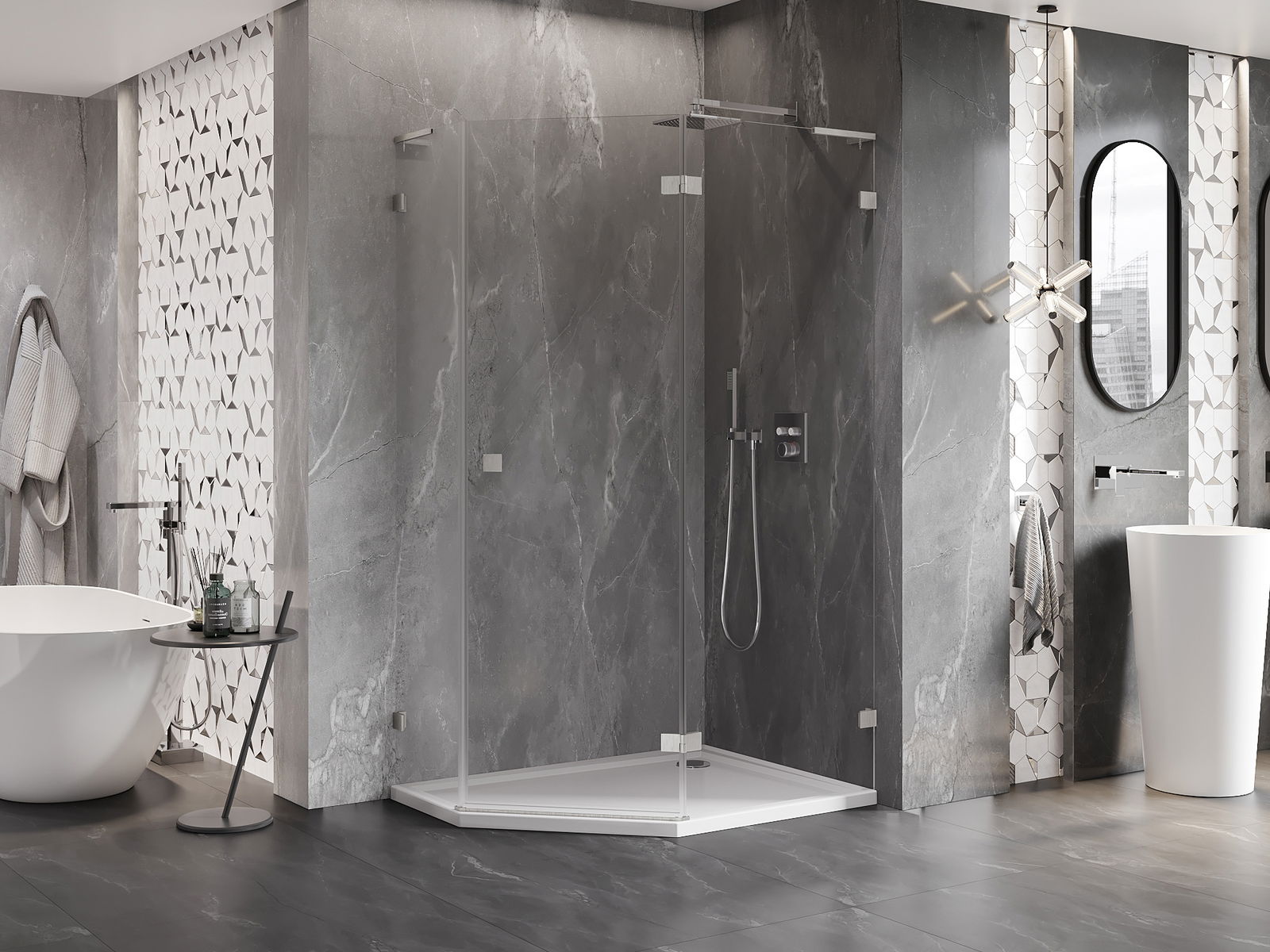 Mexen Lunar L kabina prysznicowa pięciokątna uchylna prawa 100x80 cm, transparent, nikiel szczotkowany - 831L-100P-080L-97-00-P