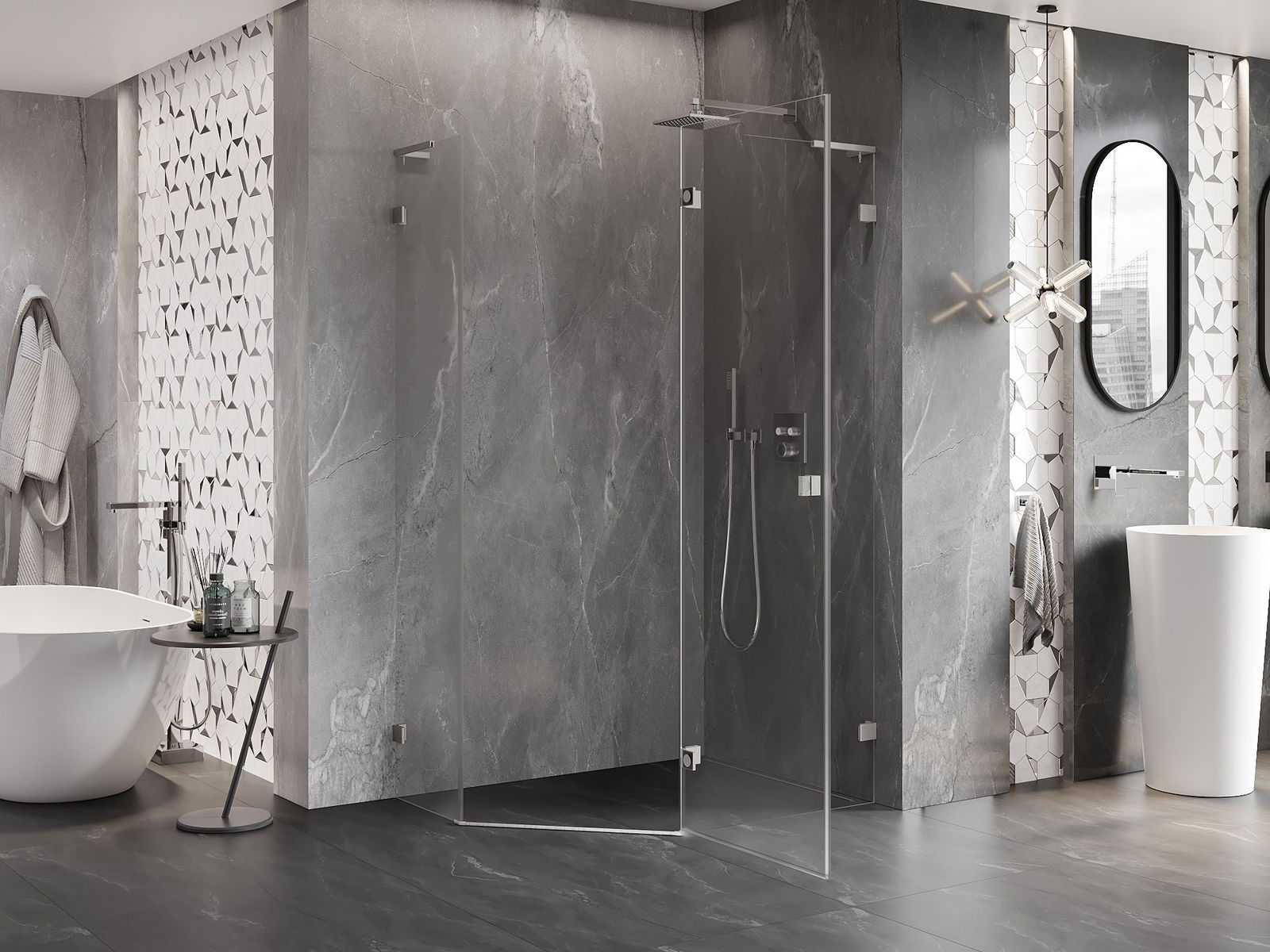 Poręczny i wygodny uchwyt został wykonany z trwałego i odpornego metalu. Modny kształt w połączeniu z wykończeniem dopasowanym do koloru profili nadaje całości nowoczesnego i stylowego wyglądu, podkreślając estetykę każdej łazienki.