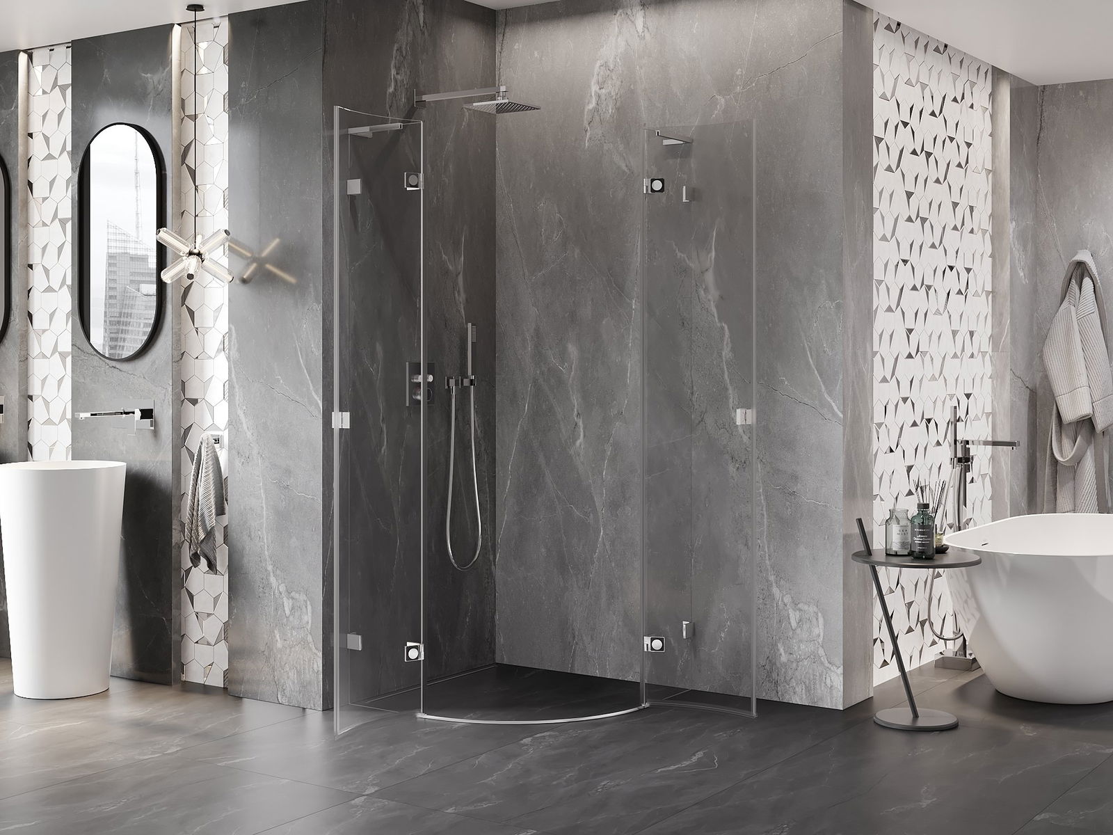 Klamry i zawiasy zostały wykonane z bardzo trwałego mosiądzu, a dodatkowo tworzą zlicowaną taflę szkła. Jest to doskonały wybór, który łączy elegancję, trwałość i nowoczesny design. Dzięki takim rozwiązaniom prysznic zyskuje na estetyce, a jednocześnie ułatwiają utrzymanie czystości.