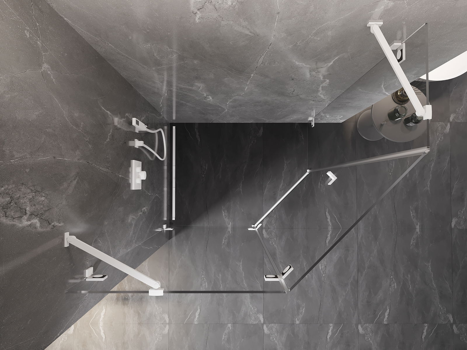 Poręczny i wygodny uchwyt został wykonany z trwałego i odpornego metalu. Modny kształt w połączeniu z wykończeniem dopasowanym do koloru profili nadaje całości nowoczesnego i stylowego wyglądu, podkreślając estetykę każdej łazienki.